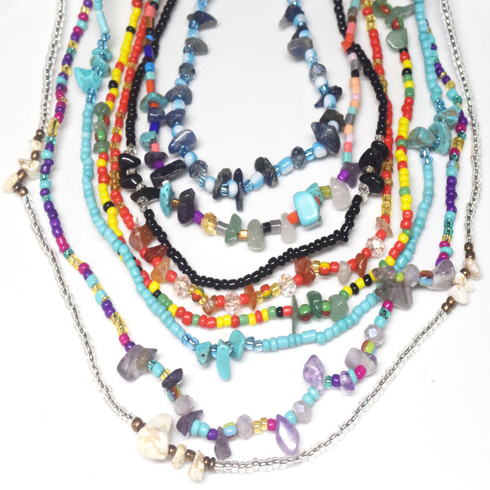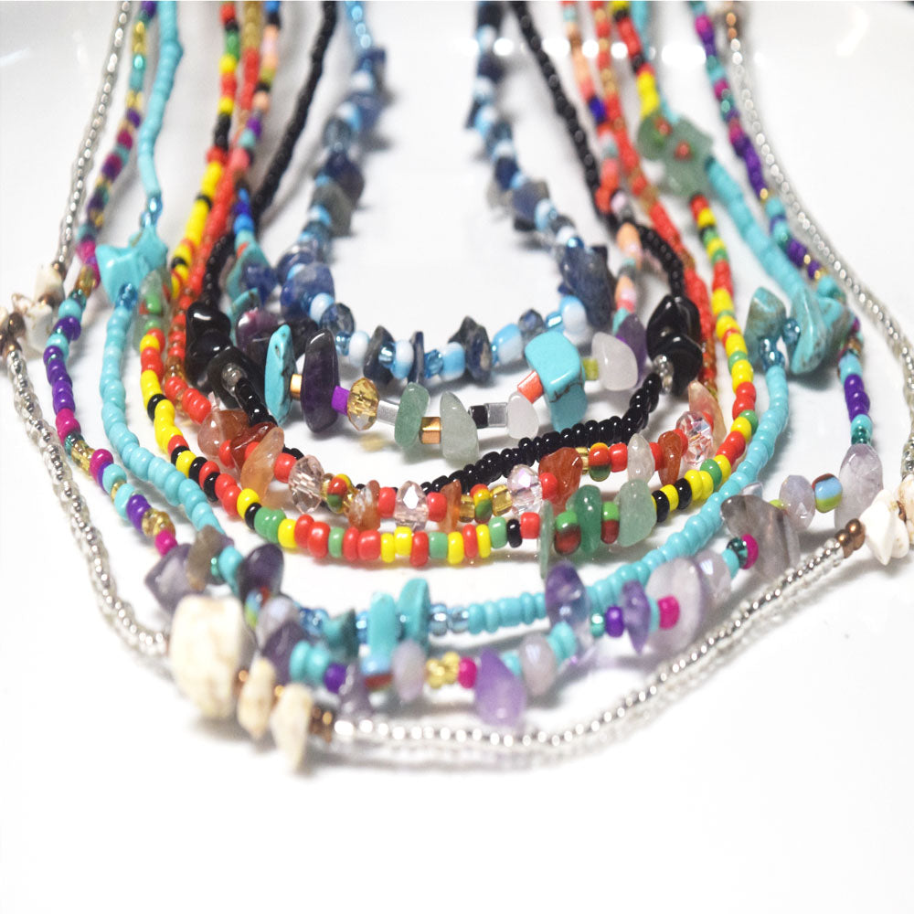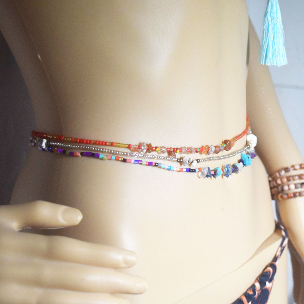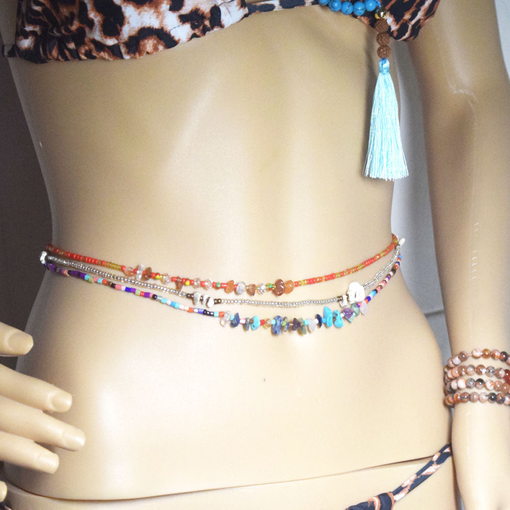 handmade glass seed beads bikini waist belly chain plus natural stone chips jewelry women