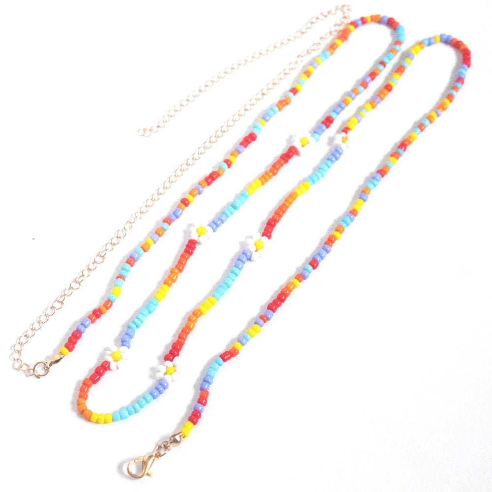 handmade glass seed beads daisy flower charm rainbow colors waist beads belly chain with lobster clasp