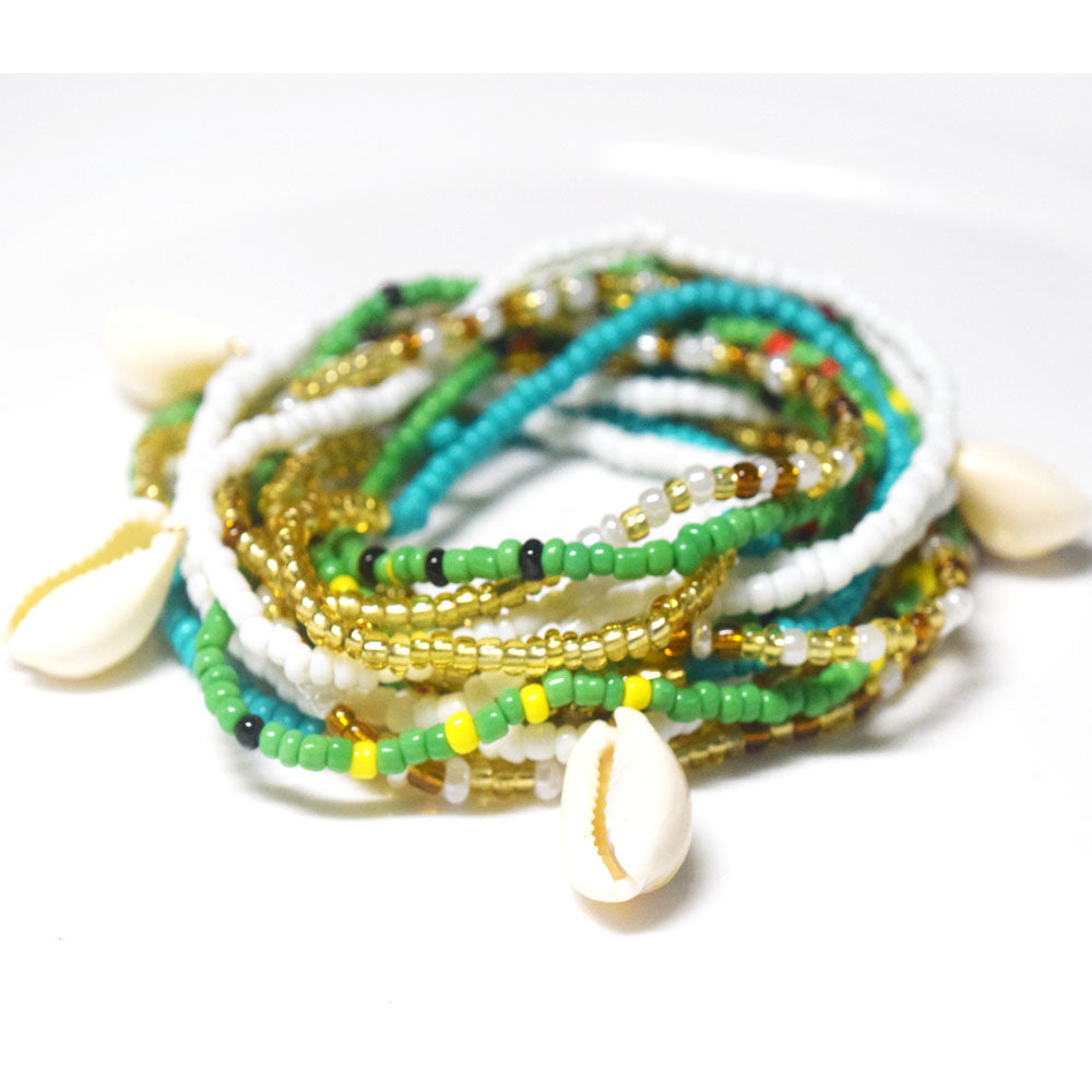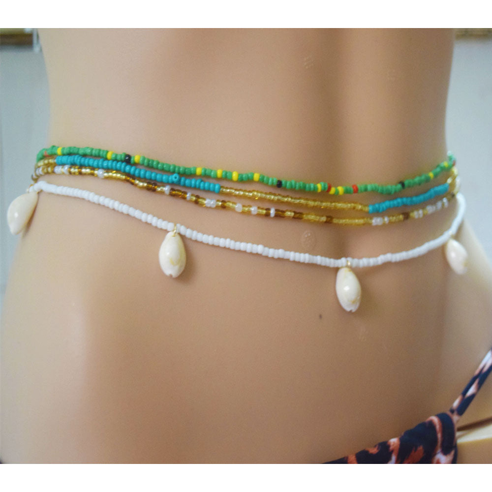 handmade glass seed beads waist belly chain 4pcs a set for women elastic cord sea shell charms stretchy body jewelry