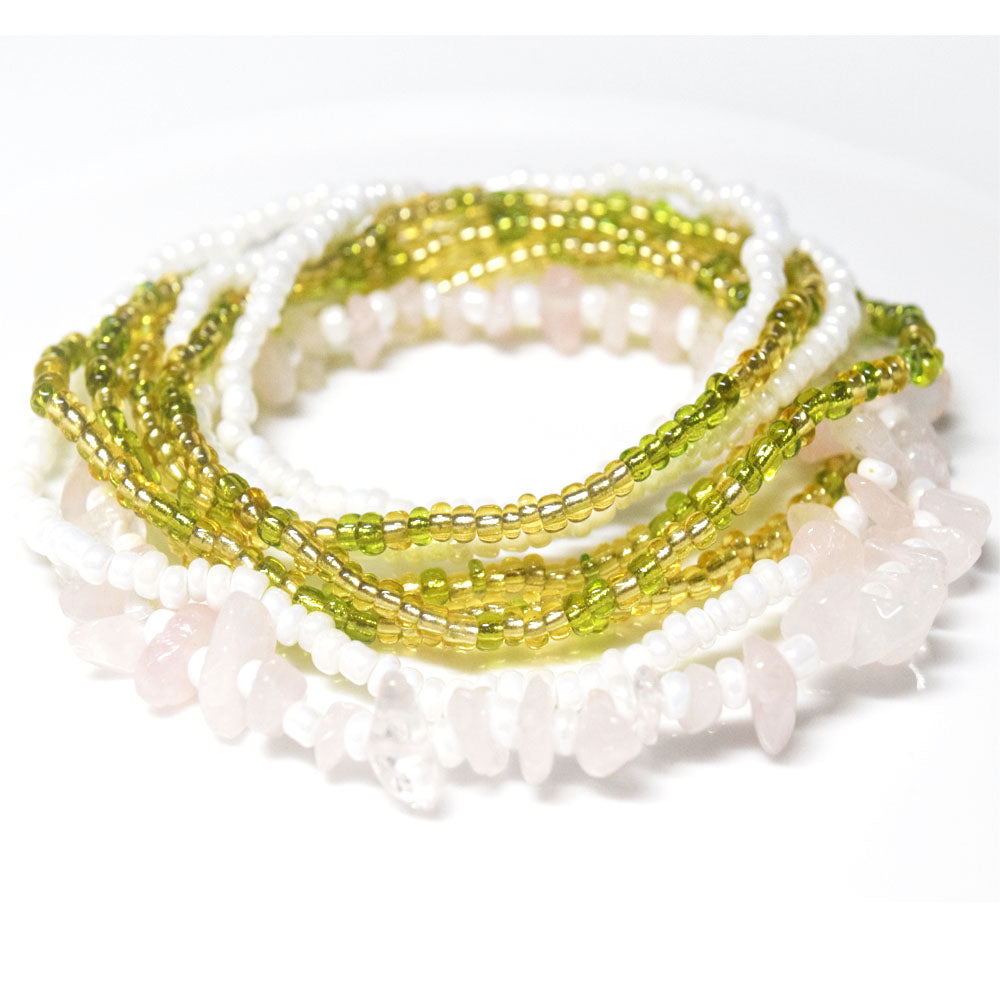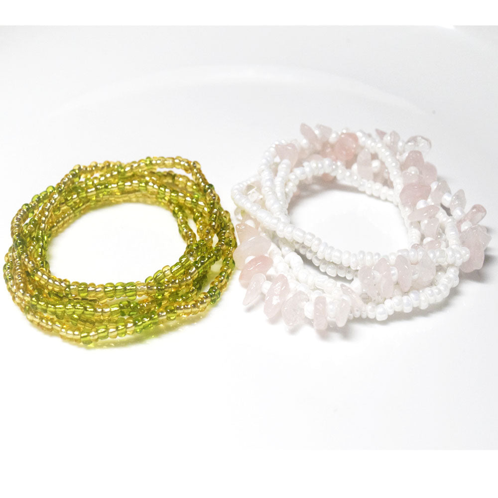 handmade glass seed beads waist belly chain plus rose quartz stone chips 2pcs a set for women elastic cord strtechy body jewelry