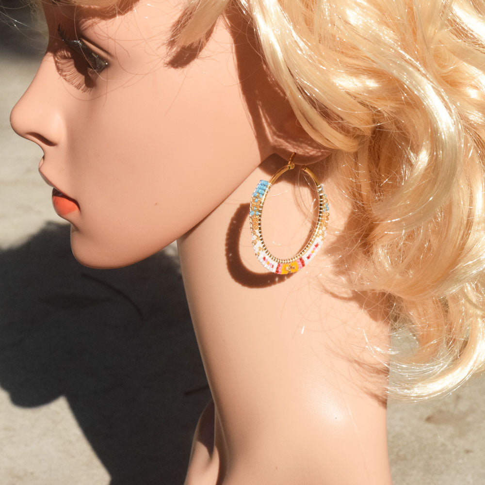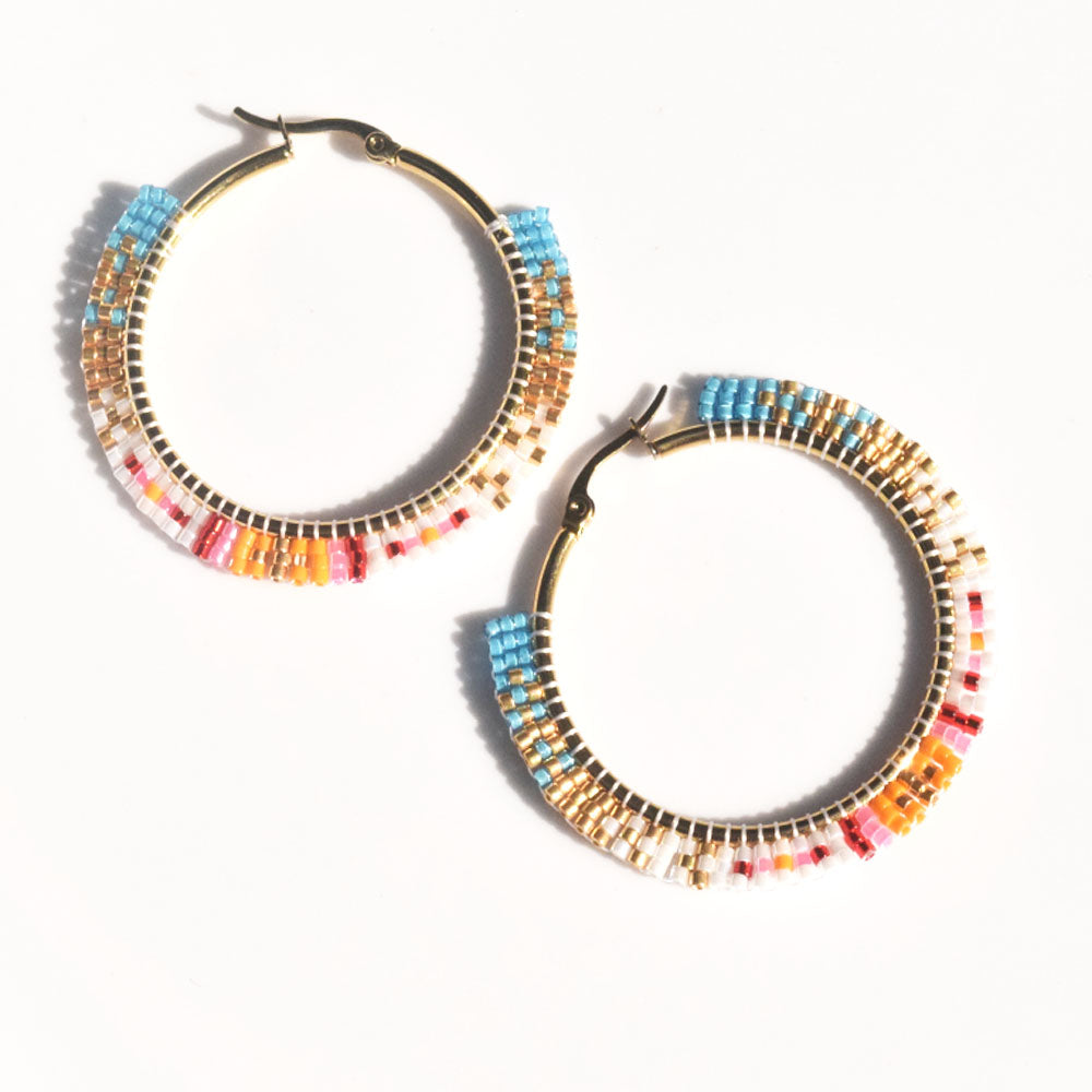 handmade women tiny stainless steel miyuki beads beaded hooped earring hoop 5cm dangle earrings jewelry accessories