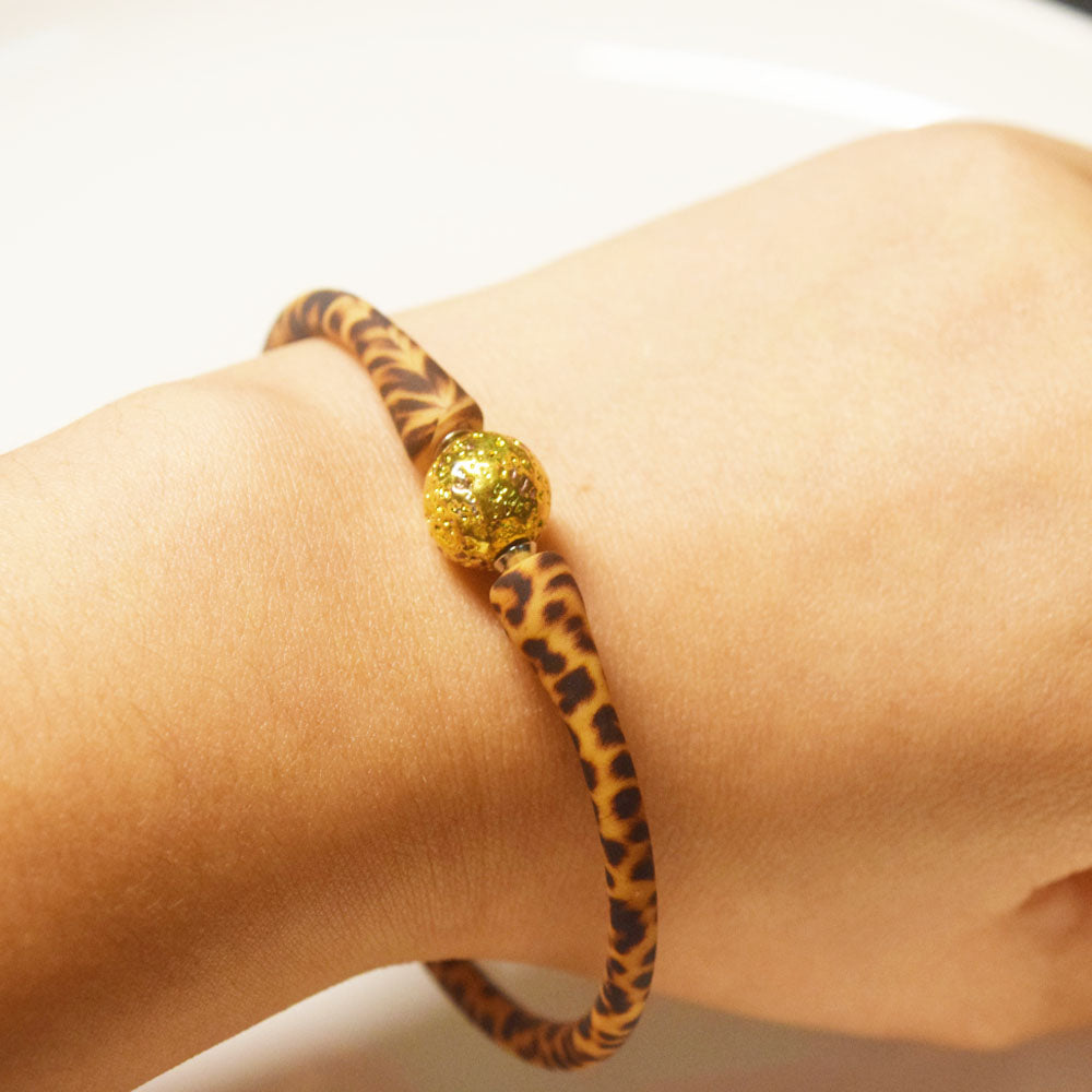 hawaii island leopard print rubber silicone wristband summer stack bracelet for DIY your own pearls beads bracelet necklace set