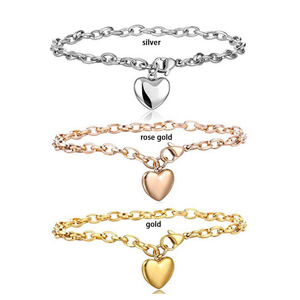 high quality fashion boho stainless steel chain women lucky heart pendant charm bracelet jewelry