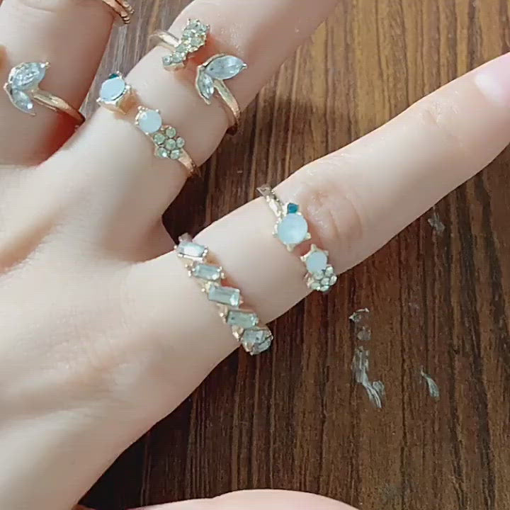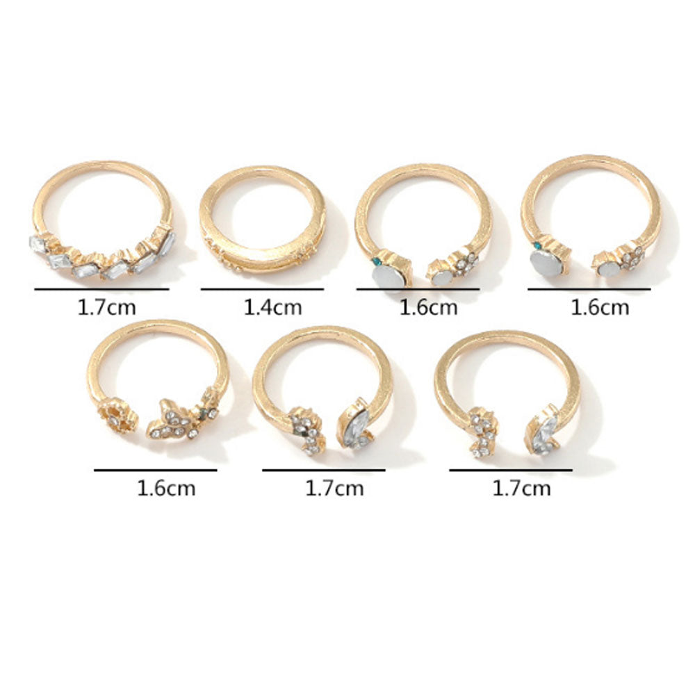 korean fashion alloy gold plated finger rings jewelry women sets for all fingers