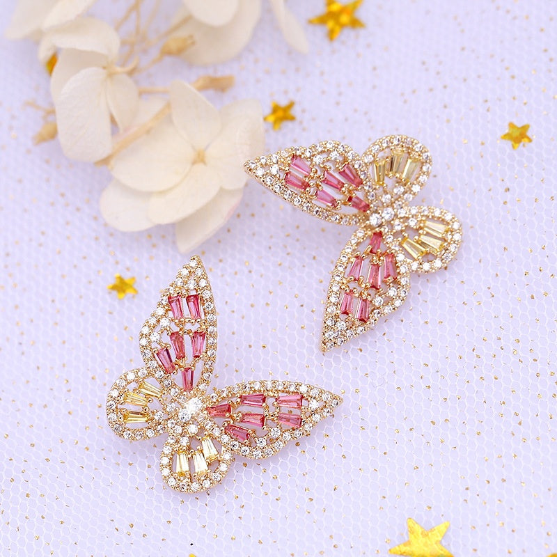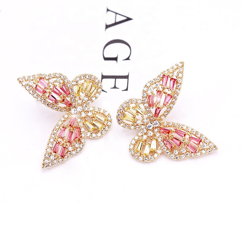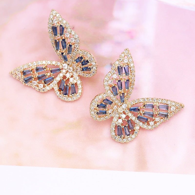 Korean Fashion Jewelry Butterfly Stud Earring Luxury Zircon Wedding Earring Women Crystal Beaded Glitter Butterfly Earrings