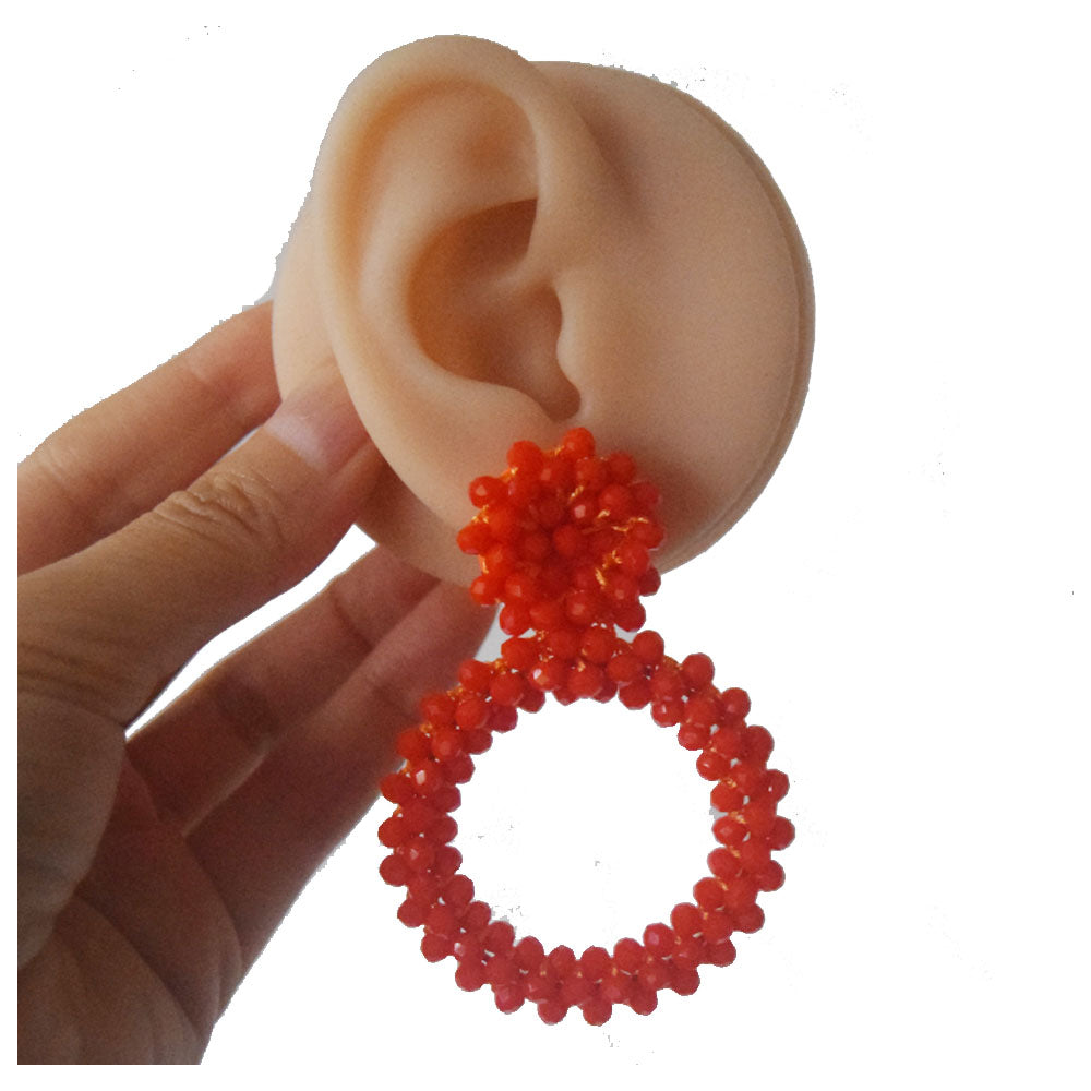 korean hoop drop crystal beads beaded statement vintage earrings jewelry