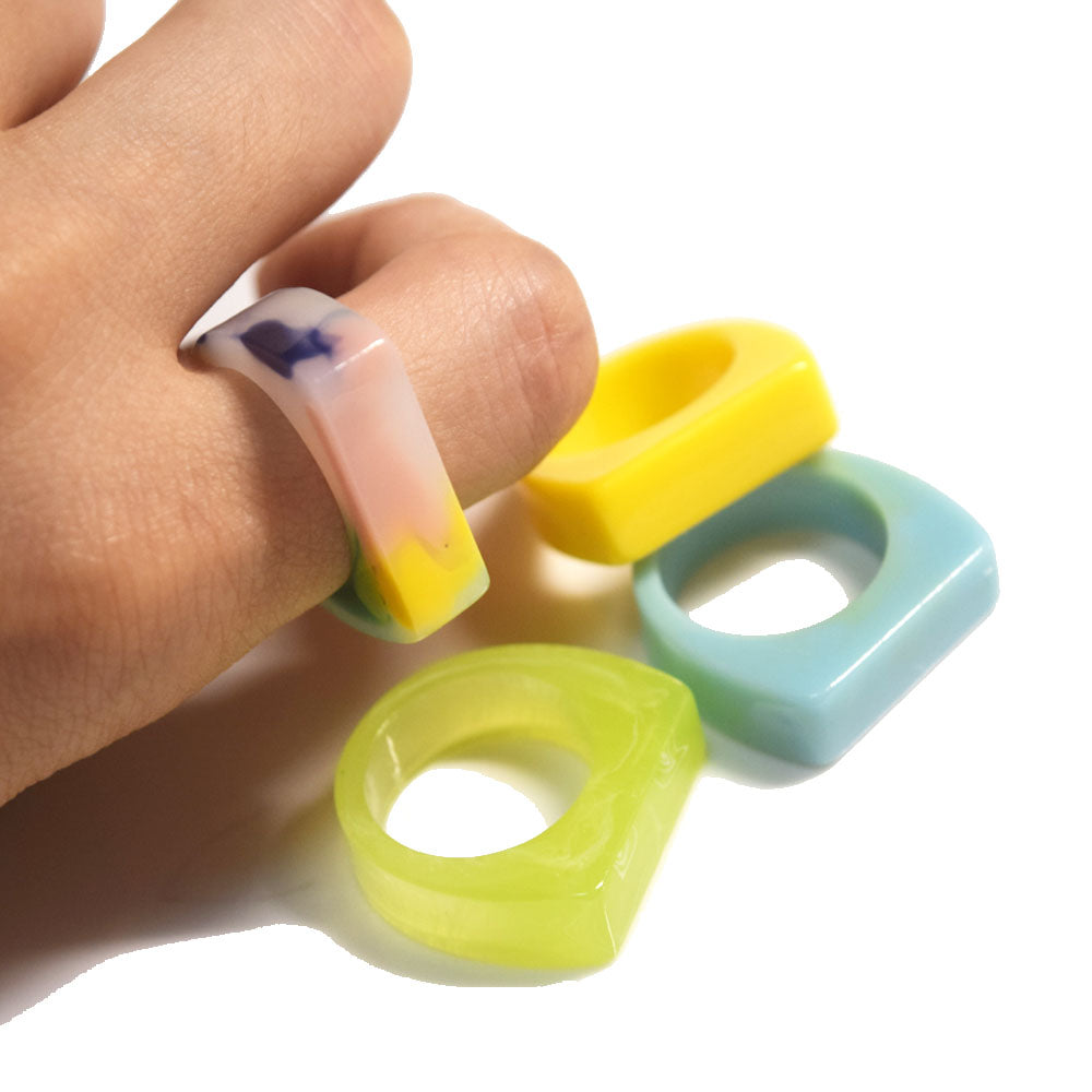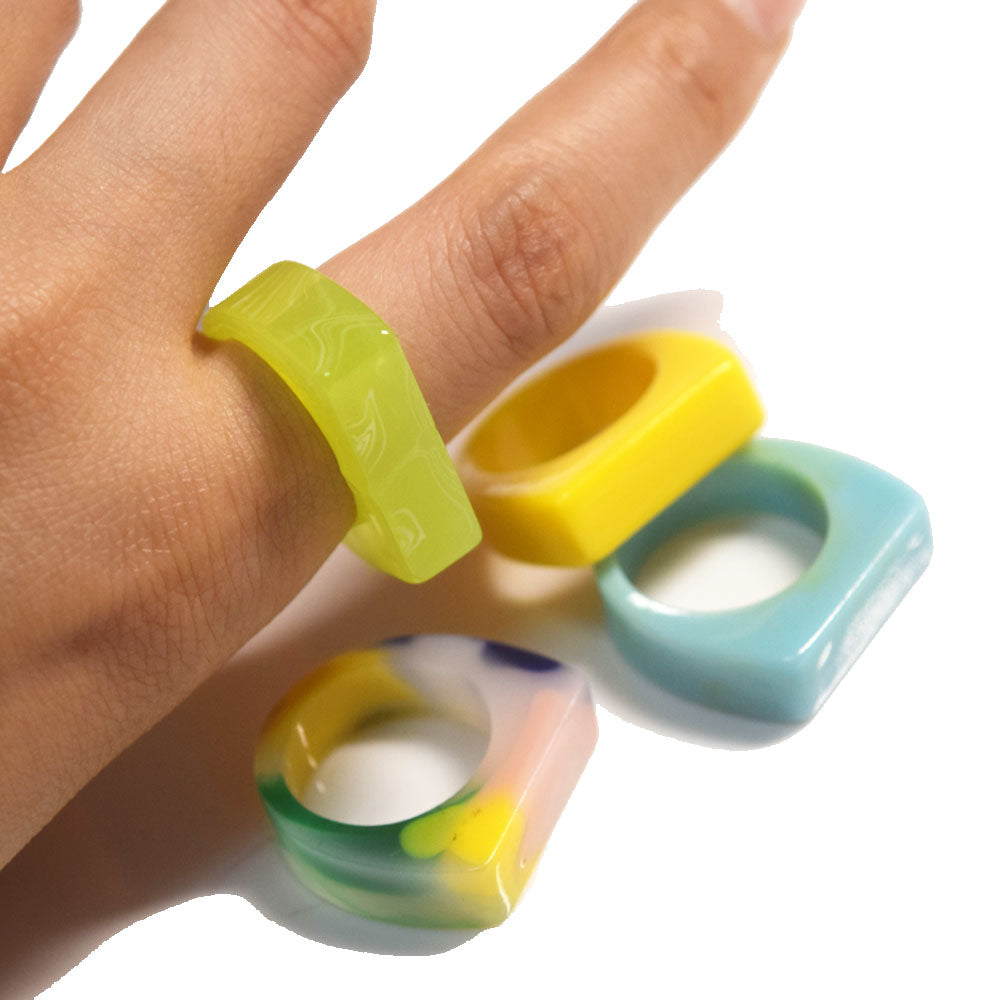 Korean style Classic punk design plastic acrylic resin finger ring women kids rings jewelry unisex