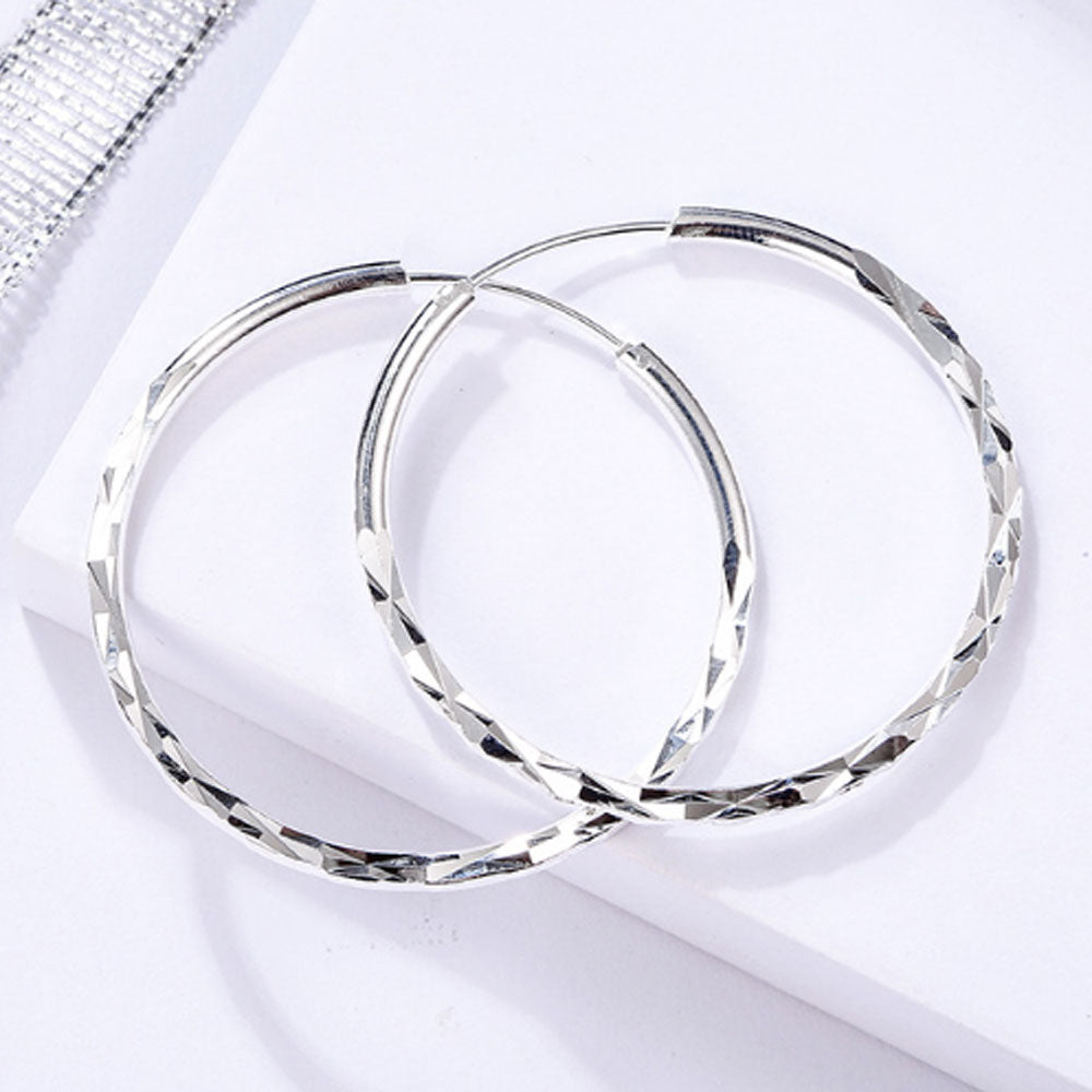 korean style silver alloy hoop earrings round hollow brass earrings women