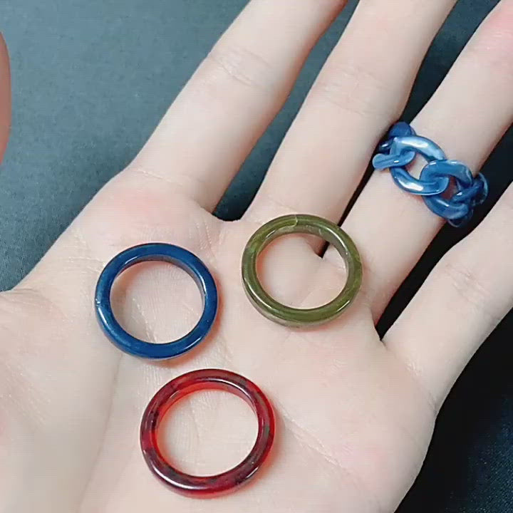 Korean style vintage chunky design blank plastic acrylic resin finger ring jewelry unisex