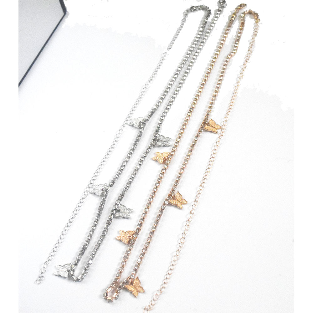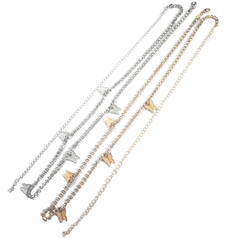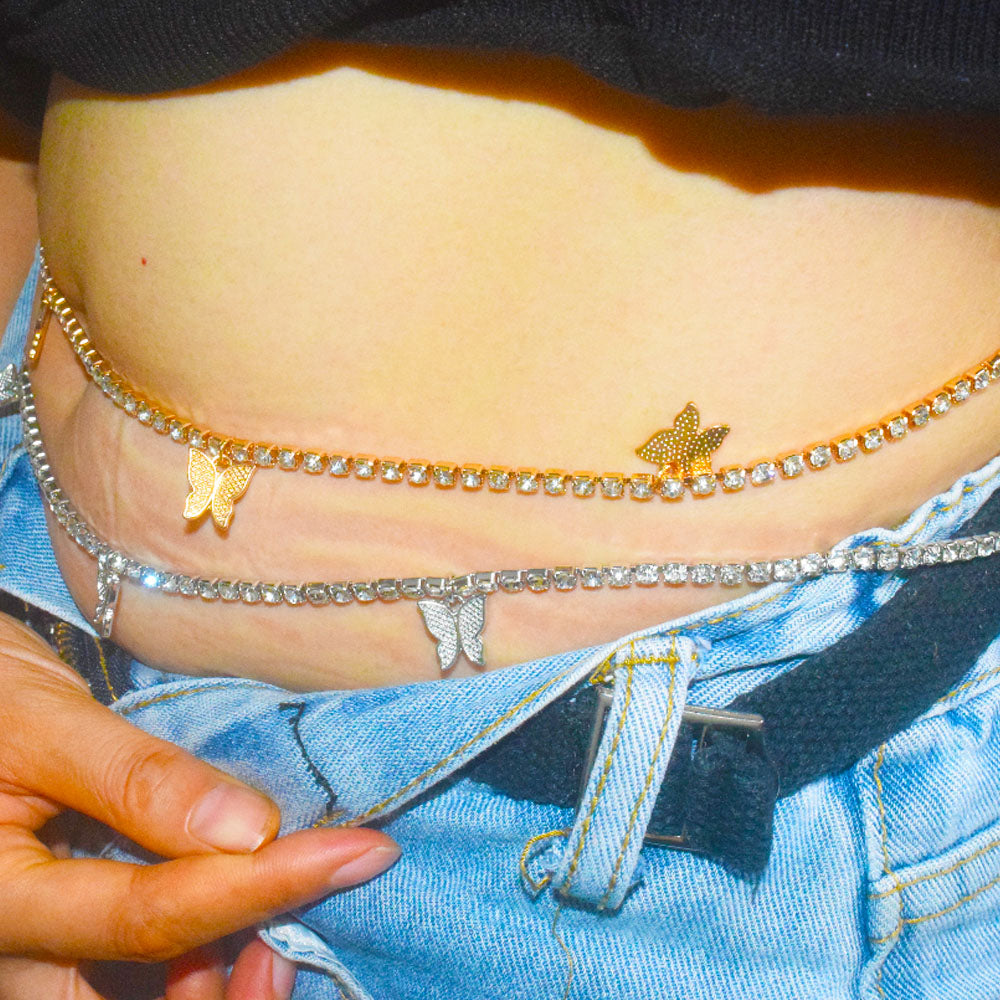 ladies sexy metal alloy butterfly charms dangle rhinestone beads tennis chain body belly chain jewelry