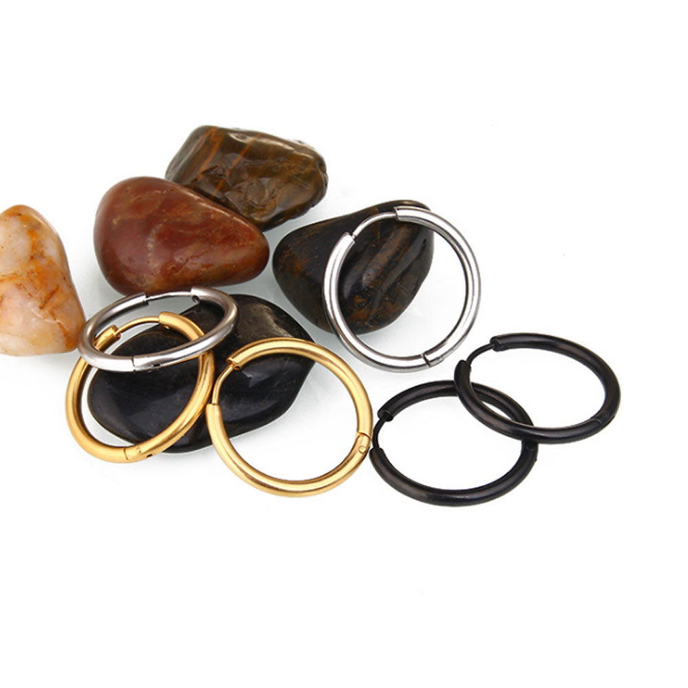 men's black silver and gold cartilage small stainless steel huggie hoop earring jewelry for women men