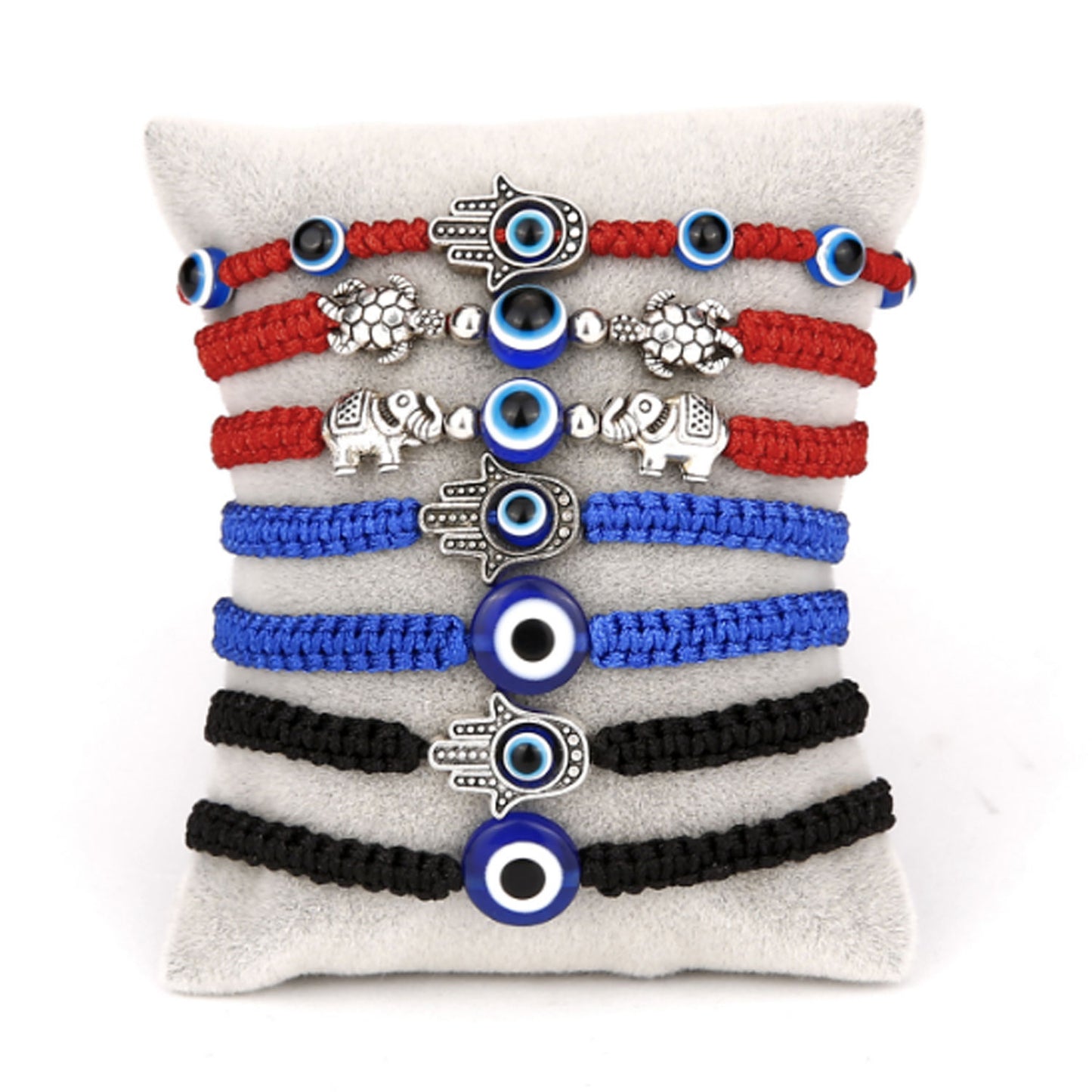 men's fashion handmade d-evil eye hamsa hand elephant bracelet adjustable lucky red black blue string rope woven bracelet