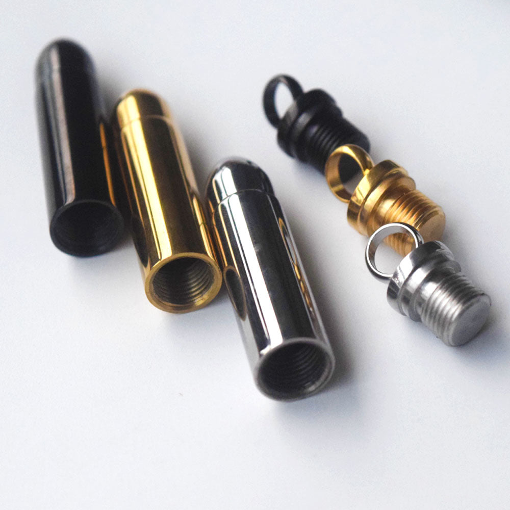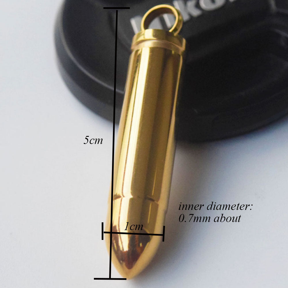 men's stainless steel bullet ashes vial urn pendant necklace jewelry no chain 47x10mm gold black and silver 3 colors