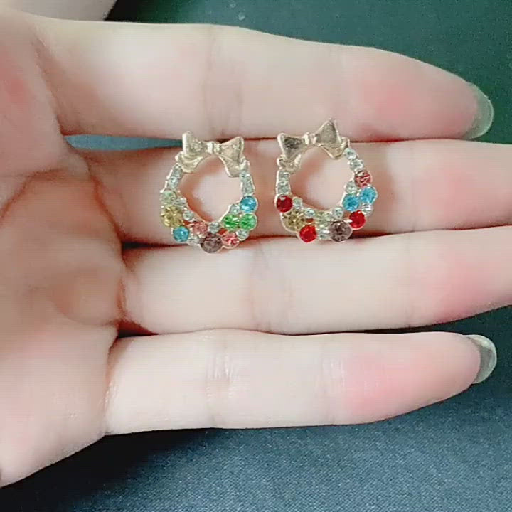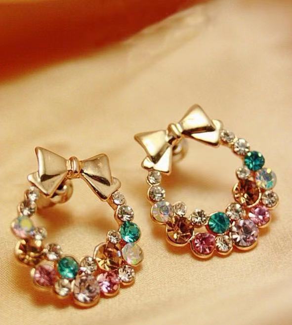 Mini dainty alloy gold plated summer earring jewellery trendy crystal rhinestone butterfly bowknot rainbow earrings for women