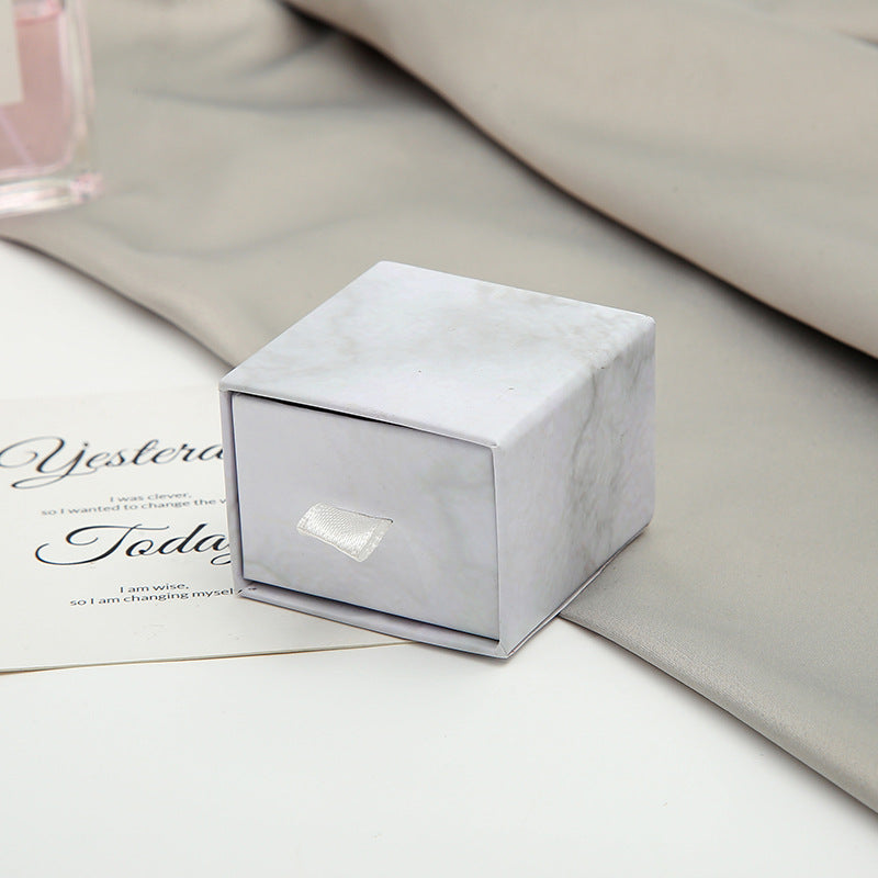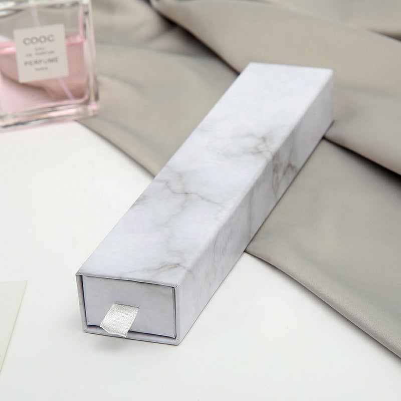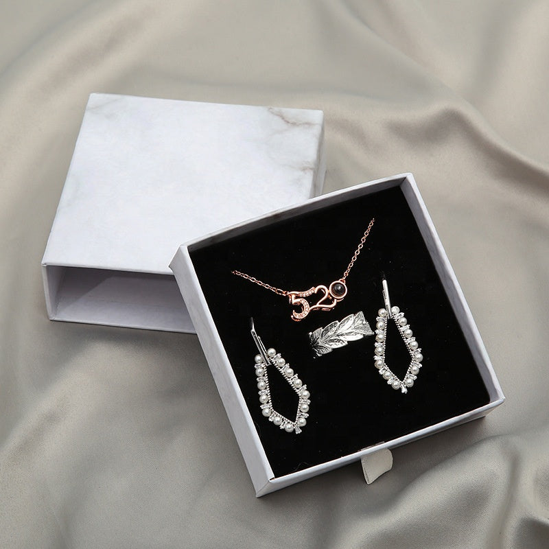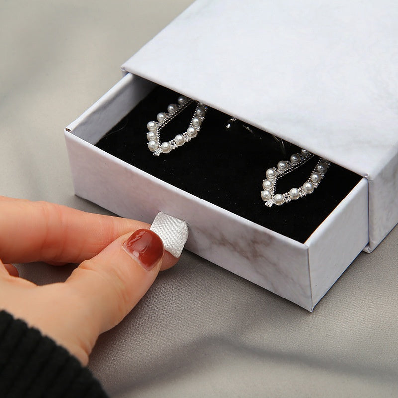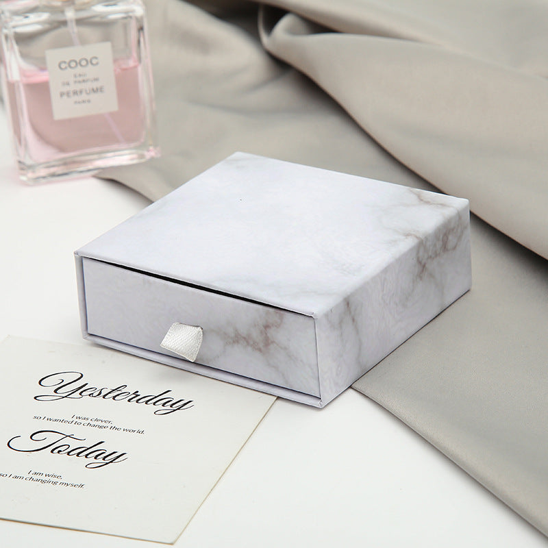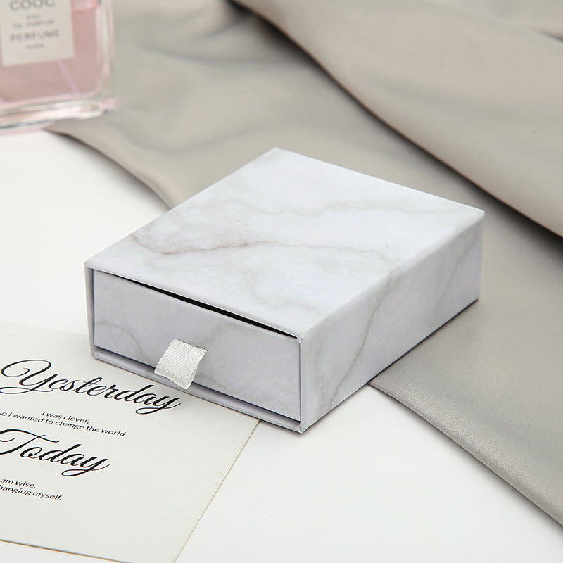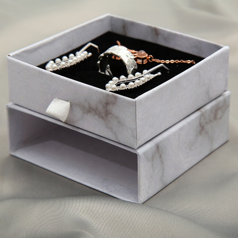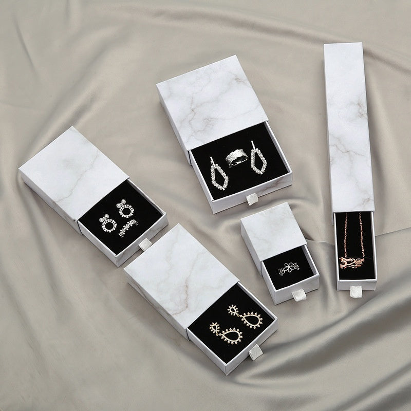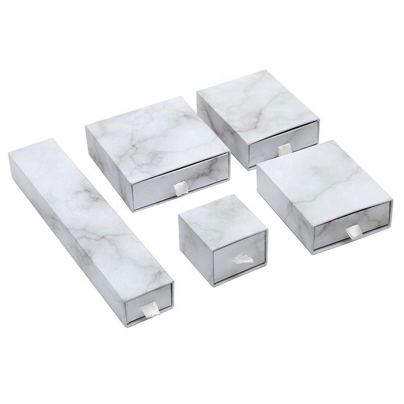 MOQ 10pcs eco friendly white paper slide out drawer luxury marble gift box earring necklace jewelry packaging