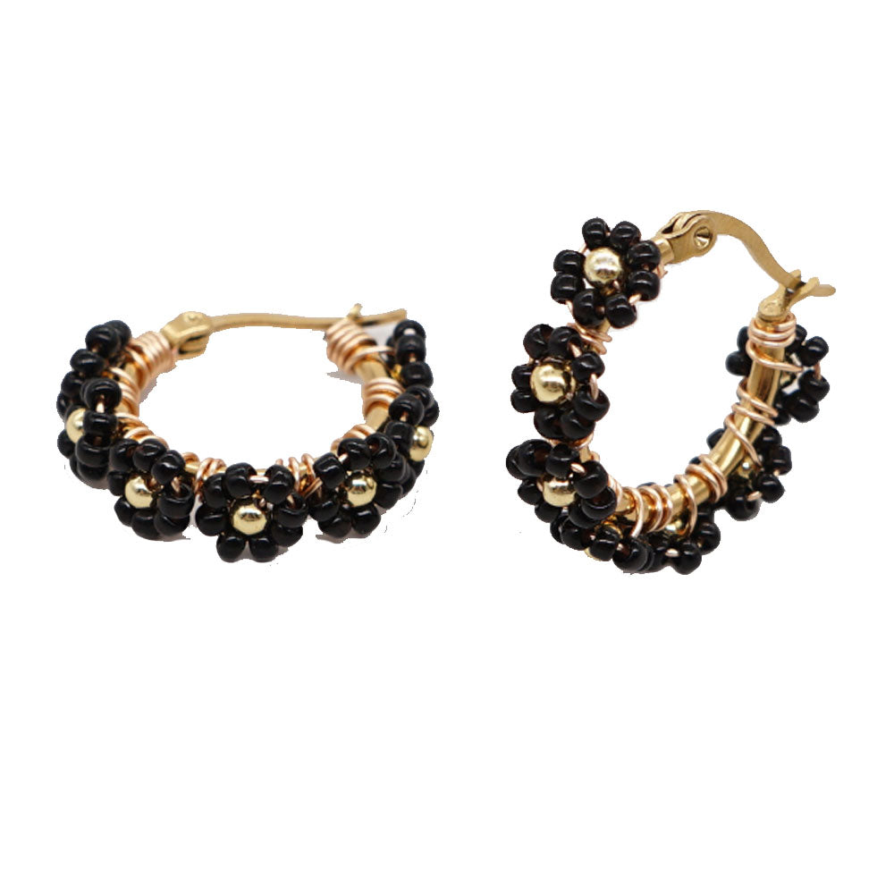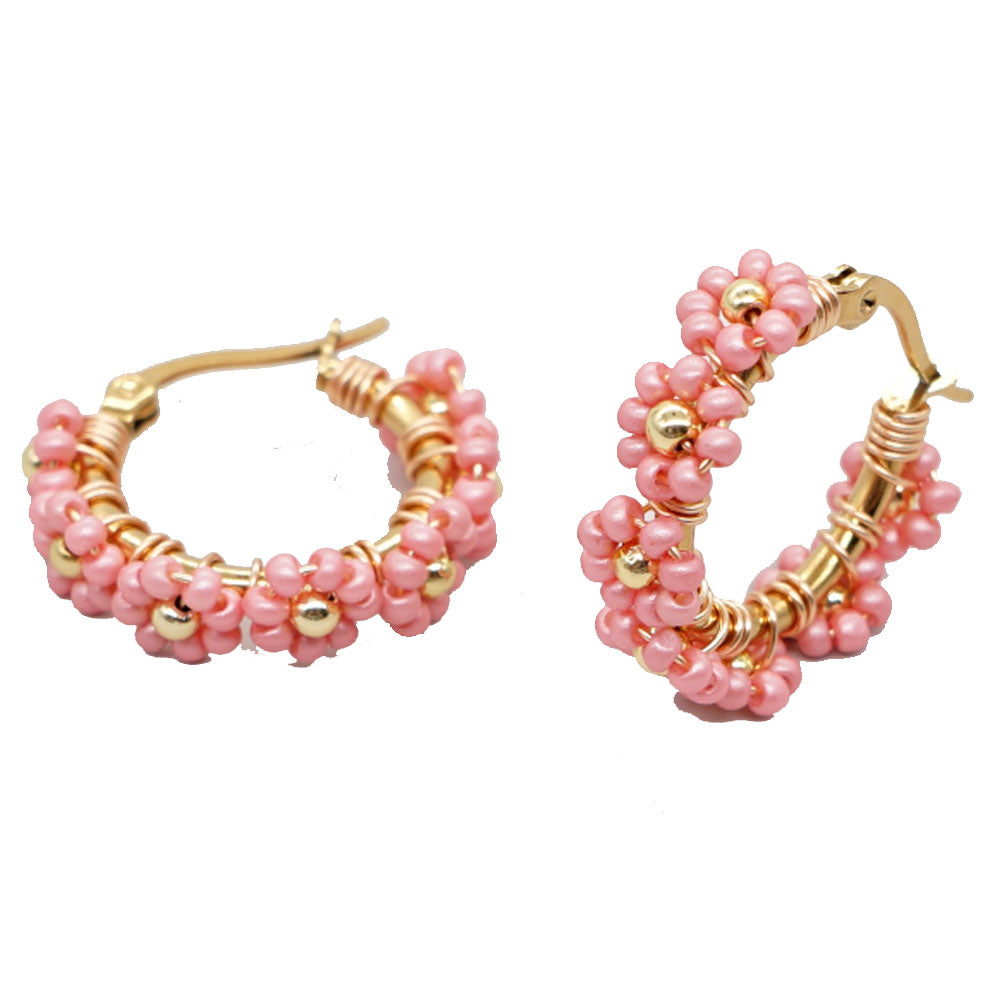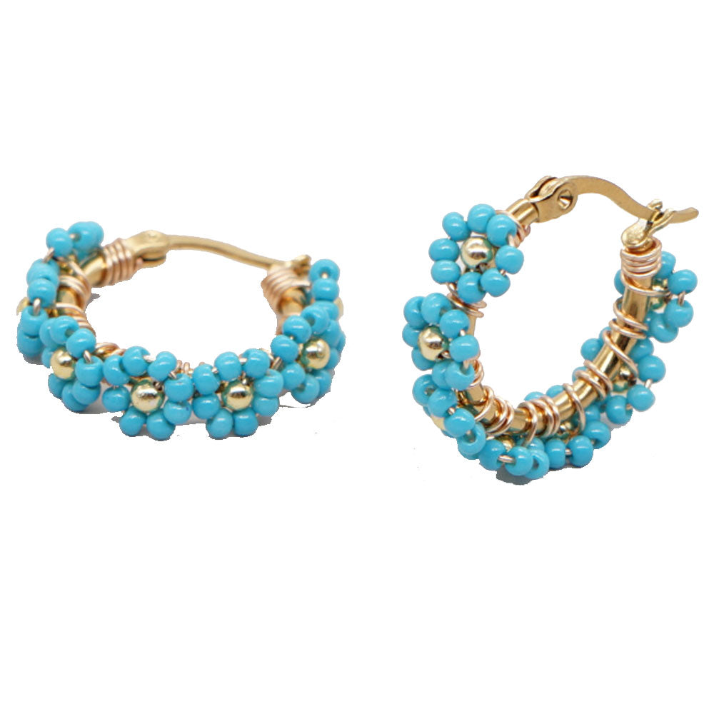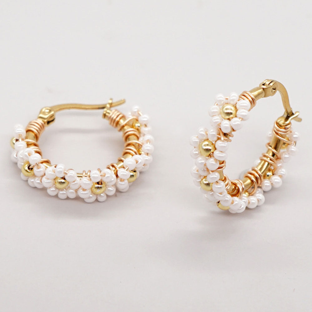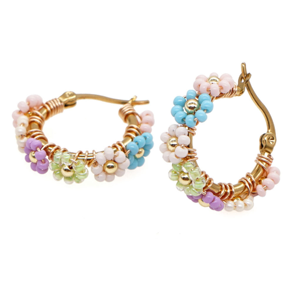 multi colored Glass seed beads beaded flower hoop earrings small 2.5cm earring jewelry for women