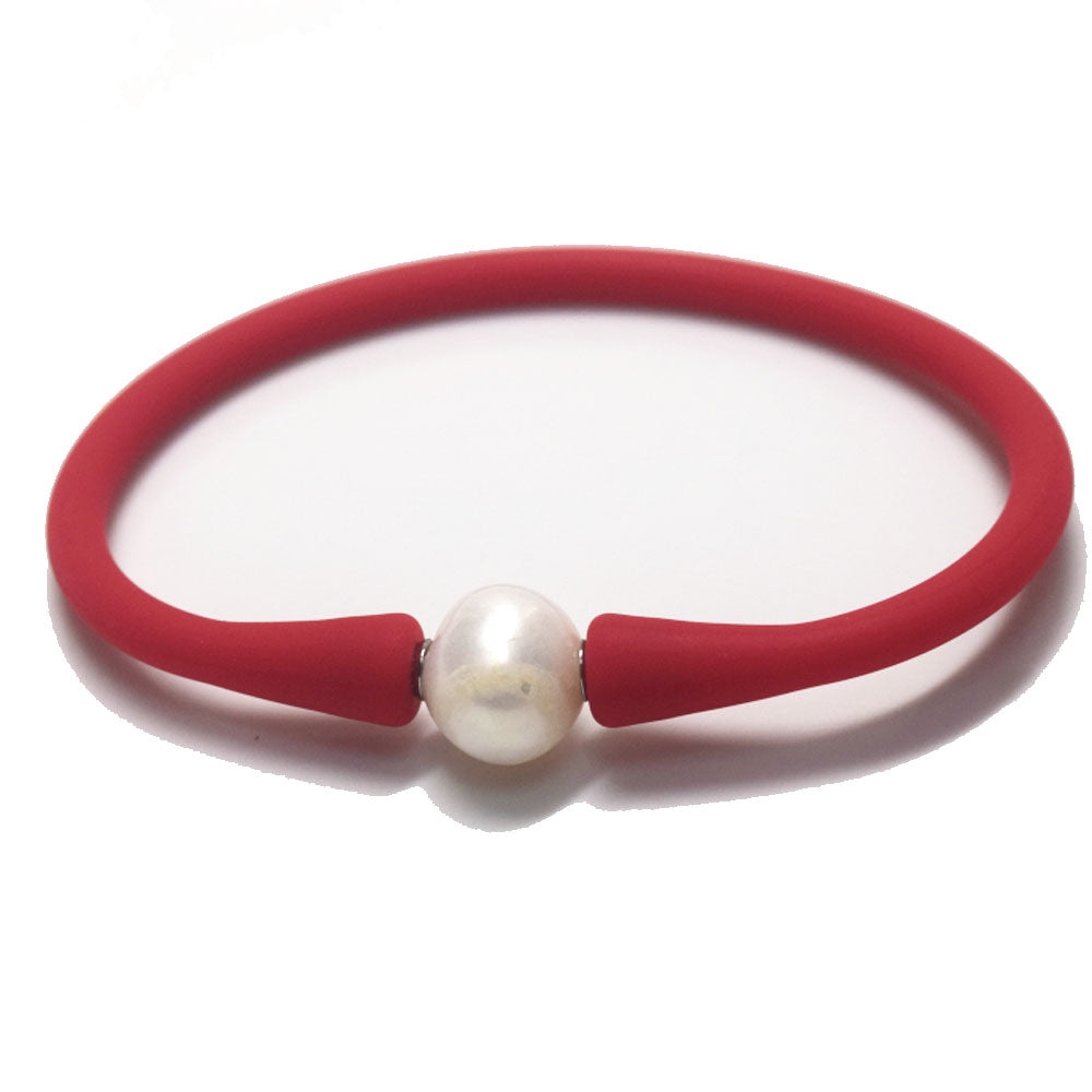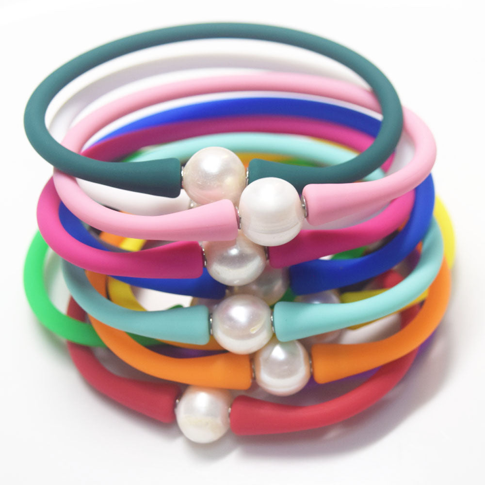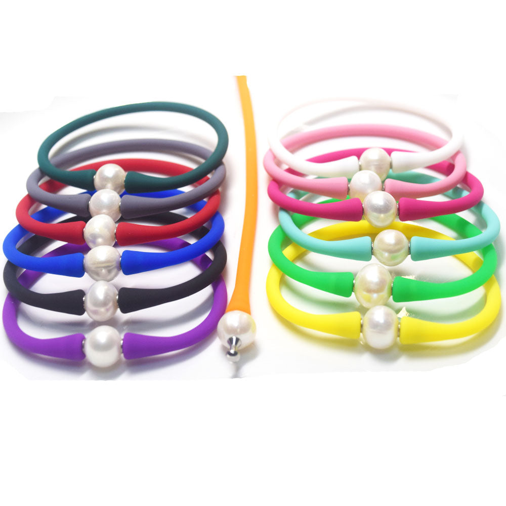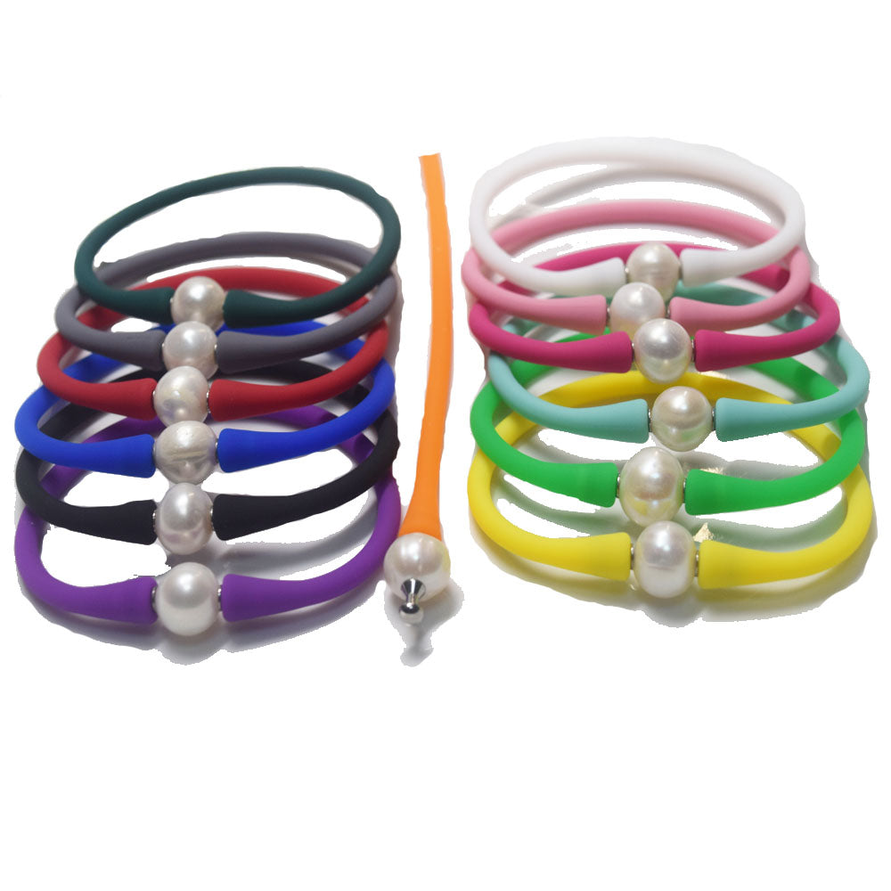 multi colors silicone wristband freshwater pearl bead charm silicone bracelets and necklaces jewelry