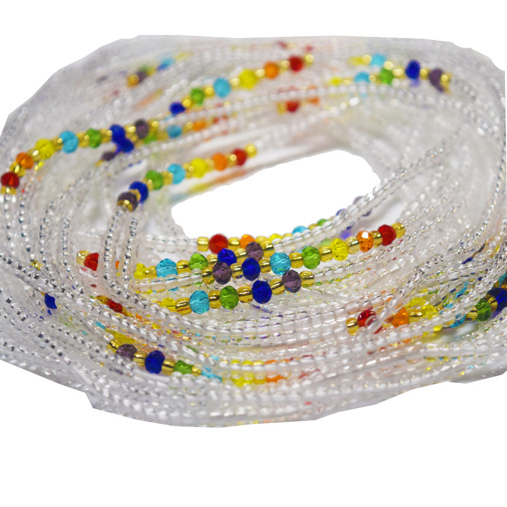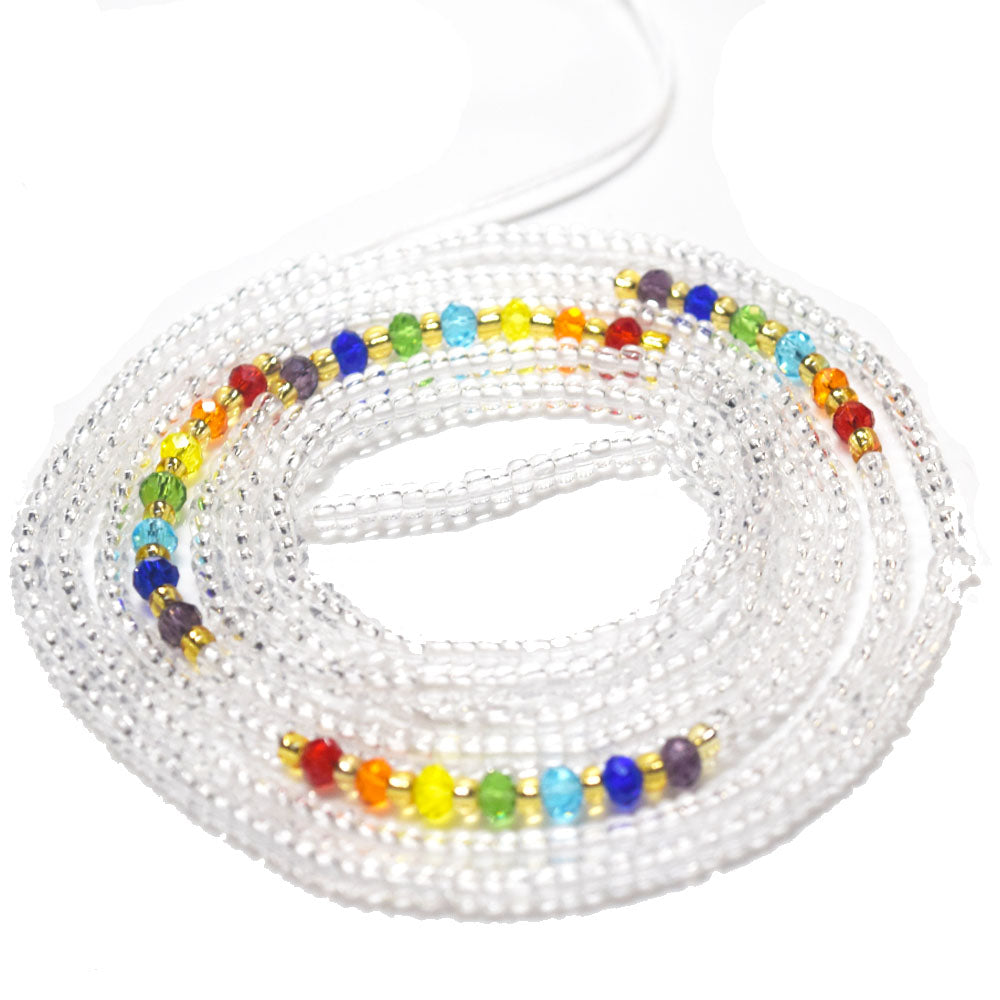 new clear white rainbow crystals weightloss double string adjustable tie on african waist beads belly chain women body jewelry