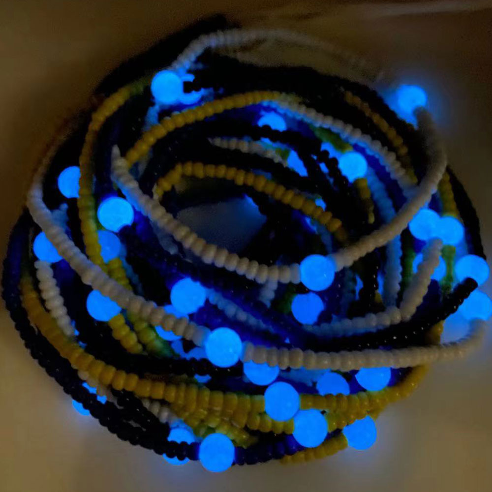 new design glow in the dark weightloss string thread adjustable tie on african waist beads belly chain women body jewelry