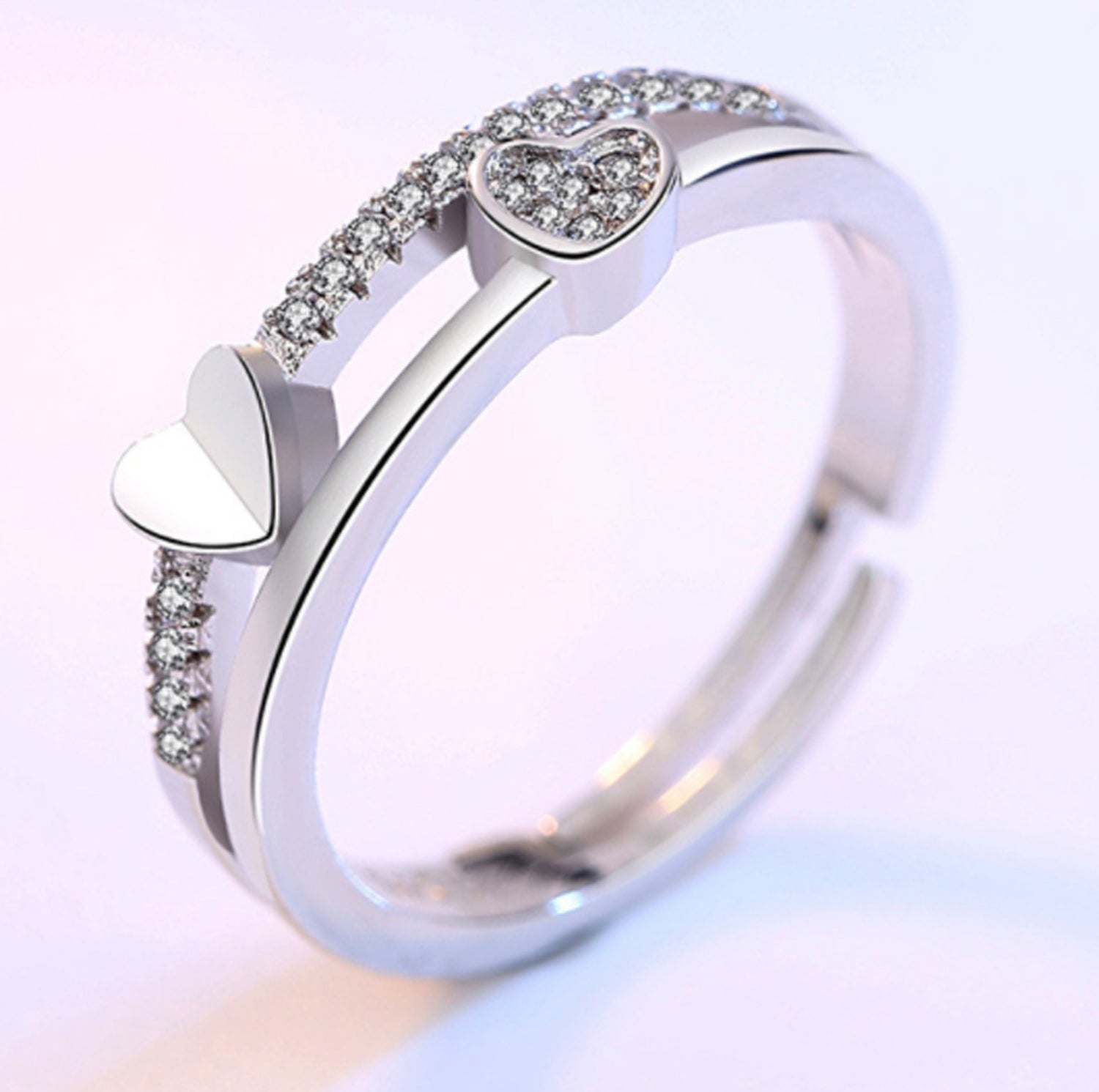New Trendy Korea Crystal Engagement Ring Heart jewelry Gift White Gold Rose Gold Elegant Adjustable Cuff Rings For Women