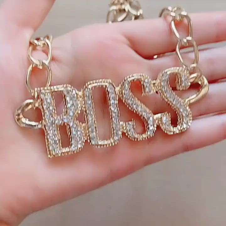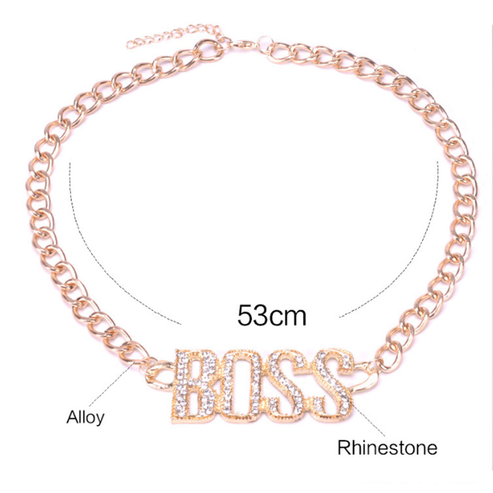 old english font 18 inches alloy iced out boss old english letter pendant chain necklace Jewelry