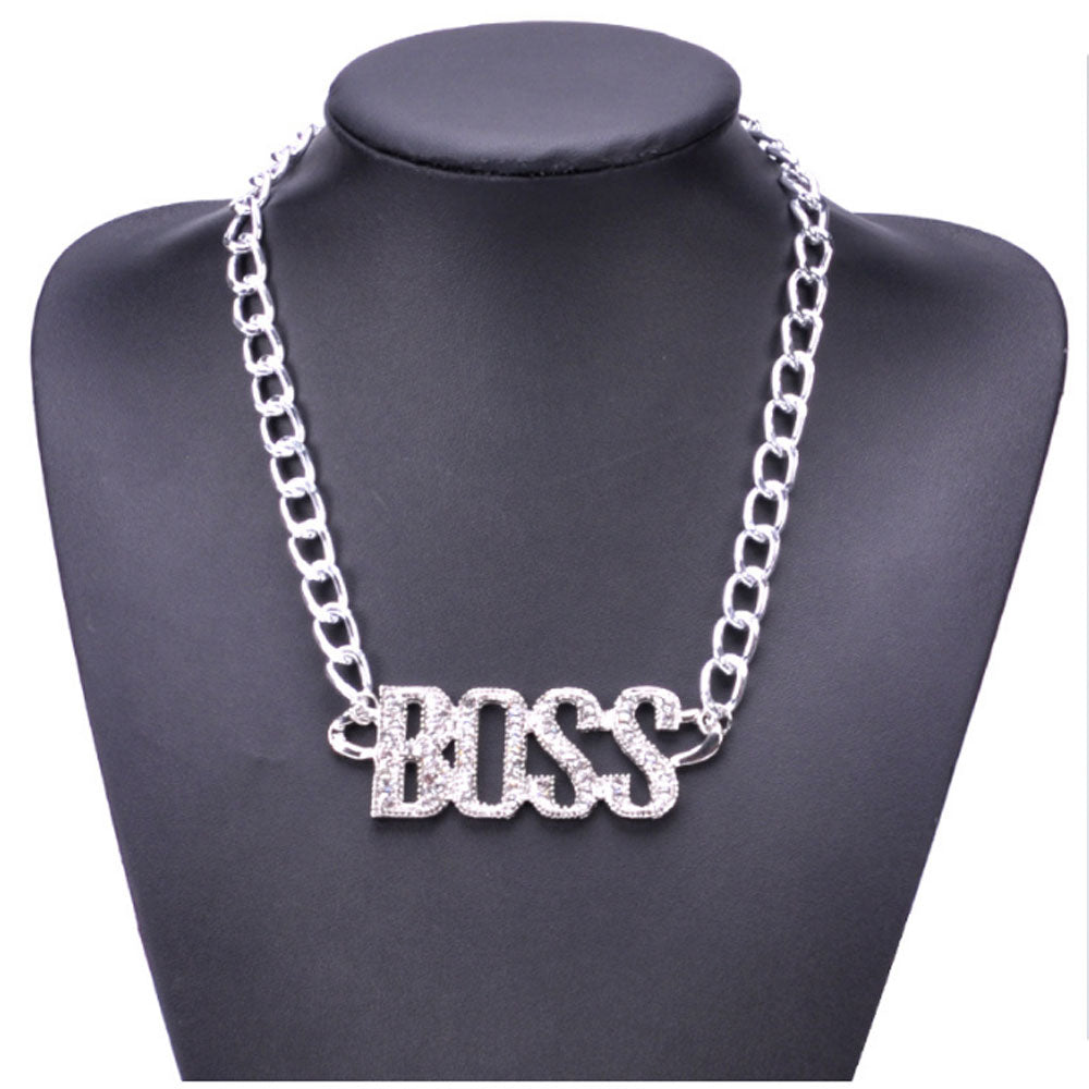 18 inches alloy iced out boss old english letter pendant chain necklace Jewelry