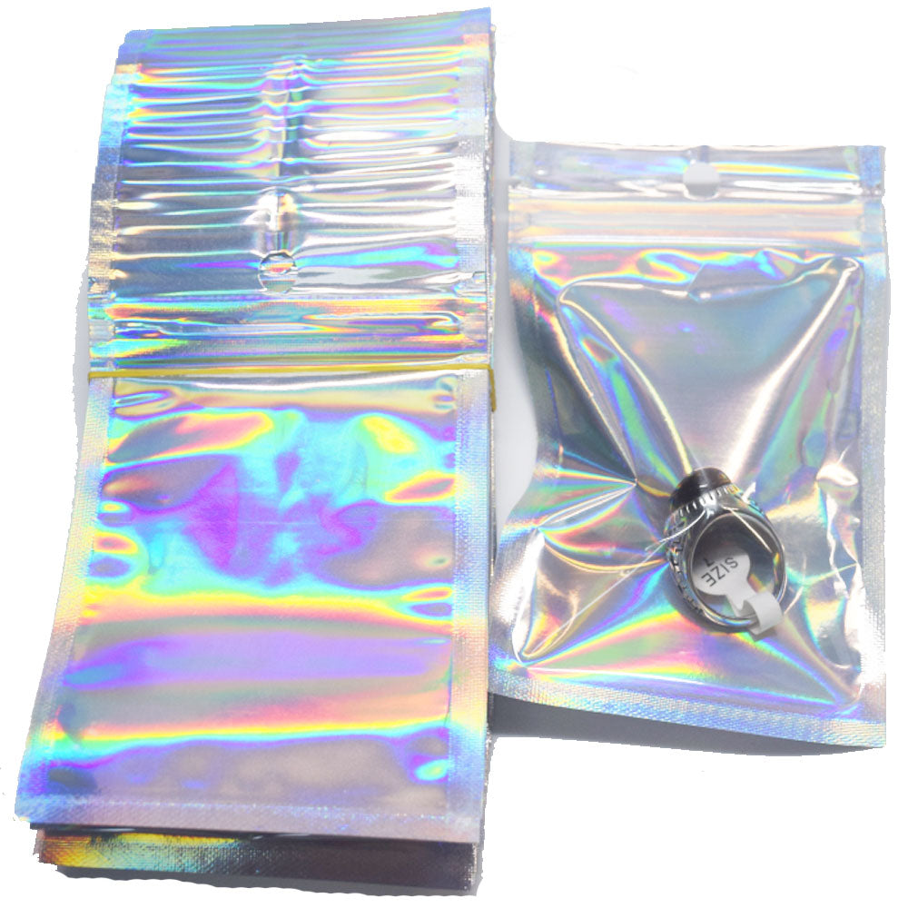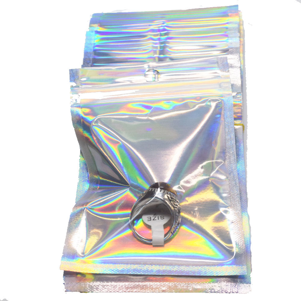 plastic holographic color mini reusable zip lock bag resealable bags for jewelry packing rich sizes 100pcs pack