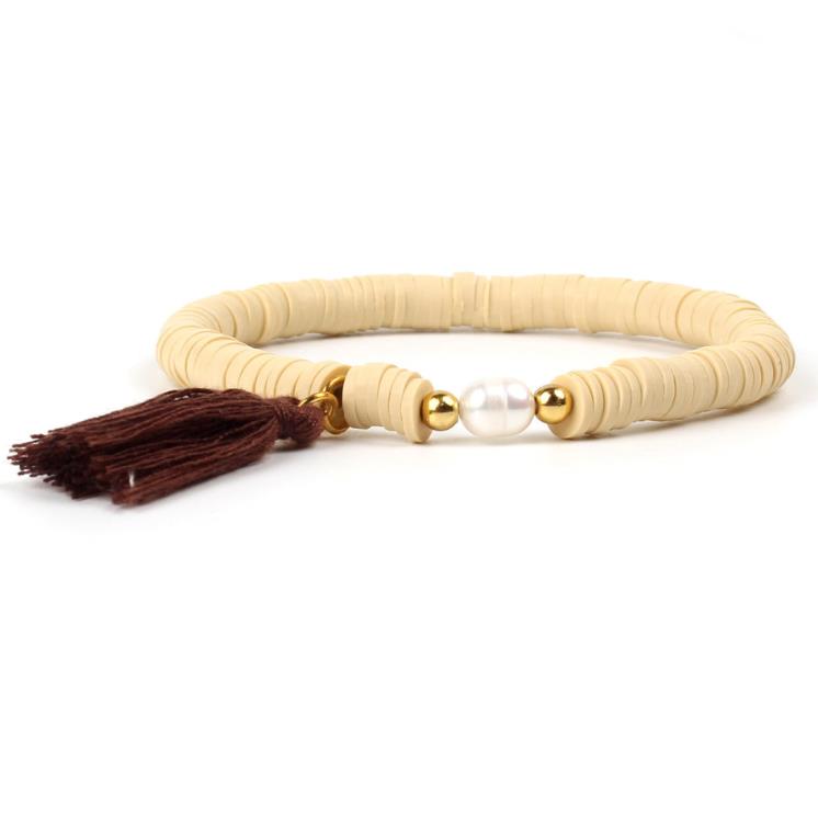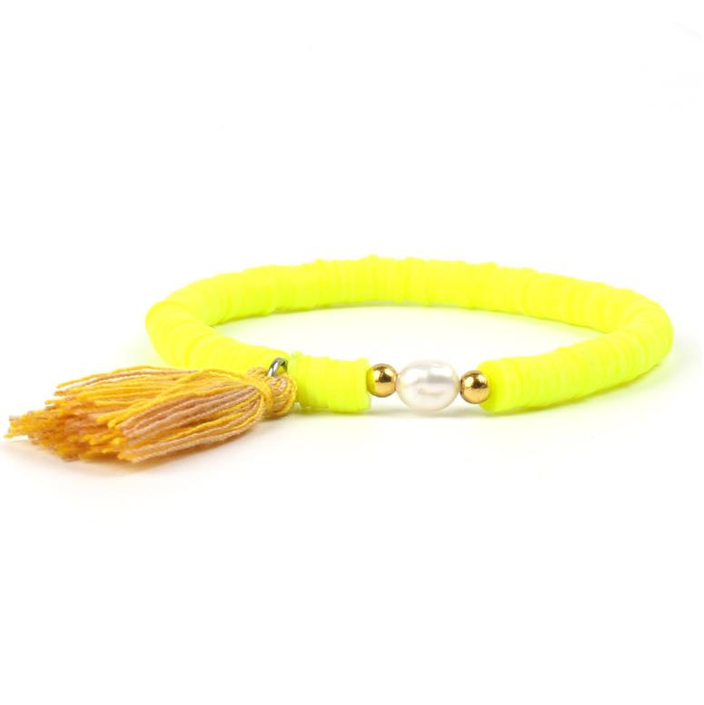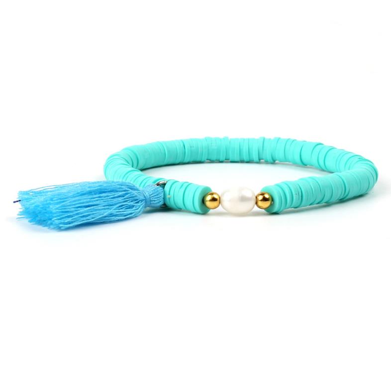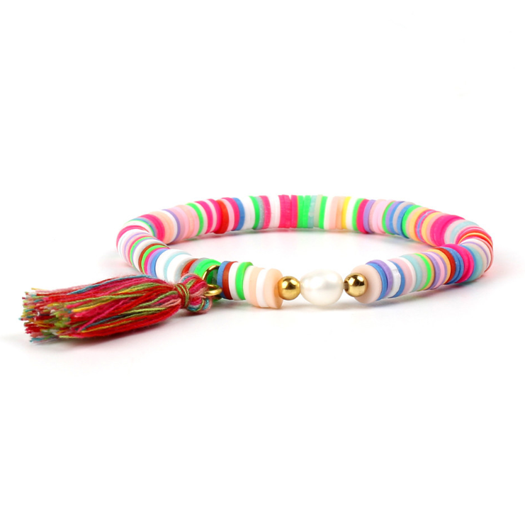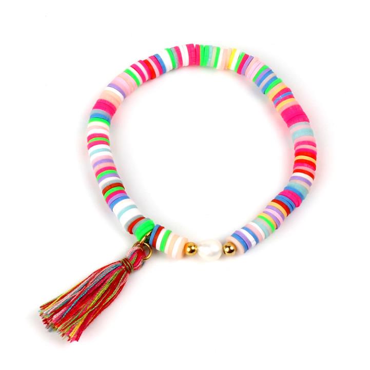 polymer clay jewelry beads fashion bracelet jewelry tassel with elastic cord with one fresh water pearl bead