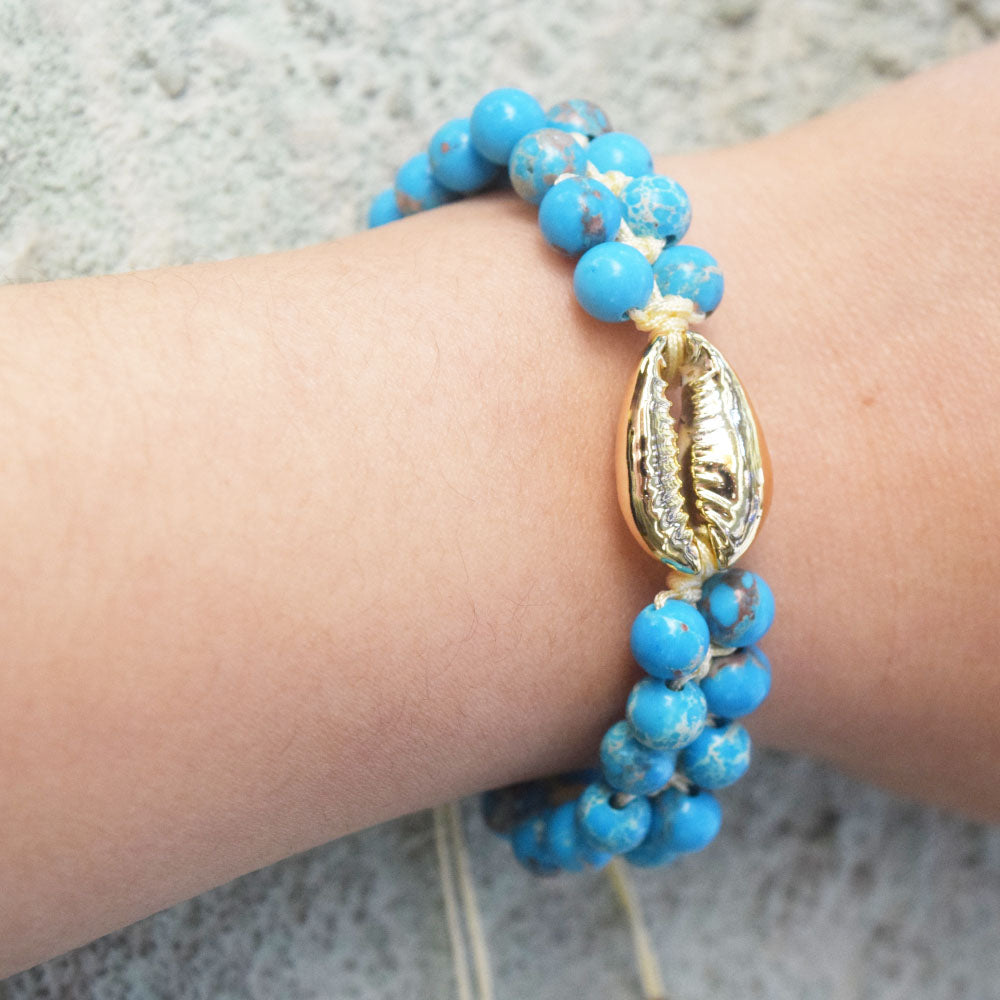 Pulsera Boho Turquoise blue Bracelet wraps Gold Plated Sea Shell Spring Summer Beach Jewelry perles Bracelets Handmade