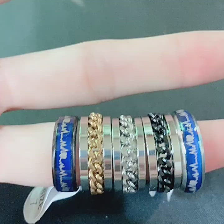 punky 8mm stainless steel rotating spinner chain finger ring men classic spin rings rotatable