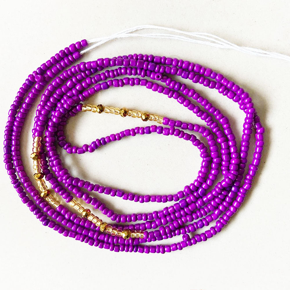 purple glass seed beads gold crystal bead tie on waist beads belly body chain with clasp double cotton string for ladies