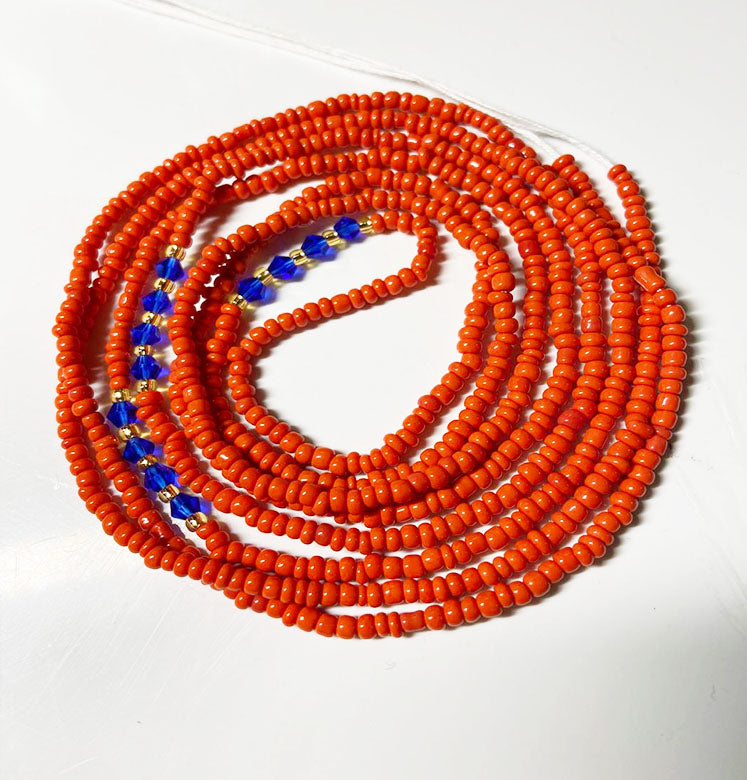 red glass seed beads bluecrystal bead tie on waist beads belly body chain with clasp double cotton string for ladies