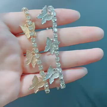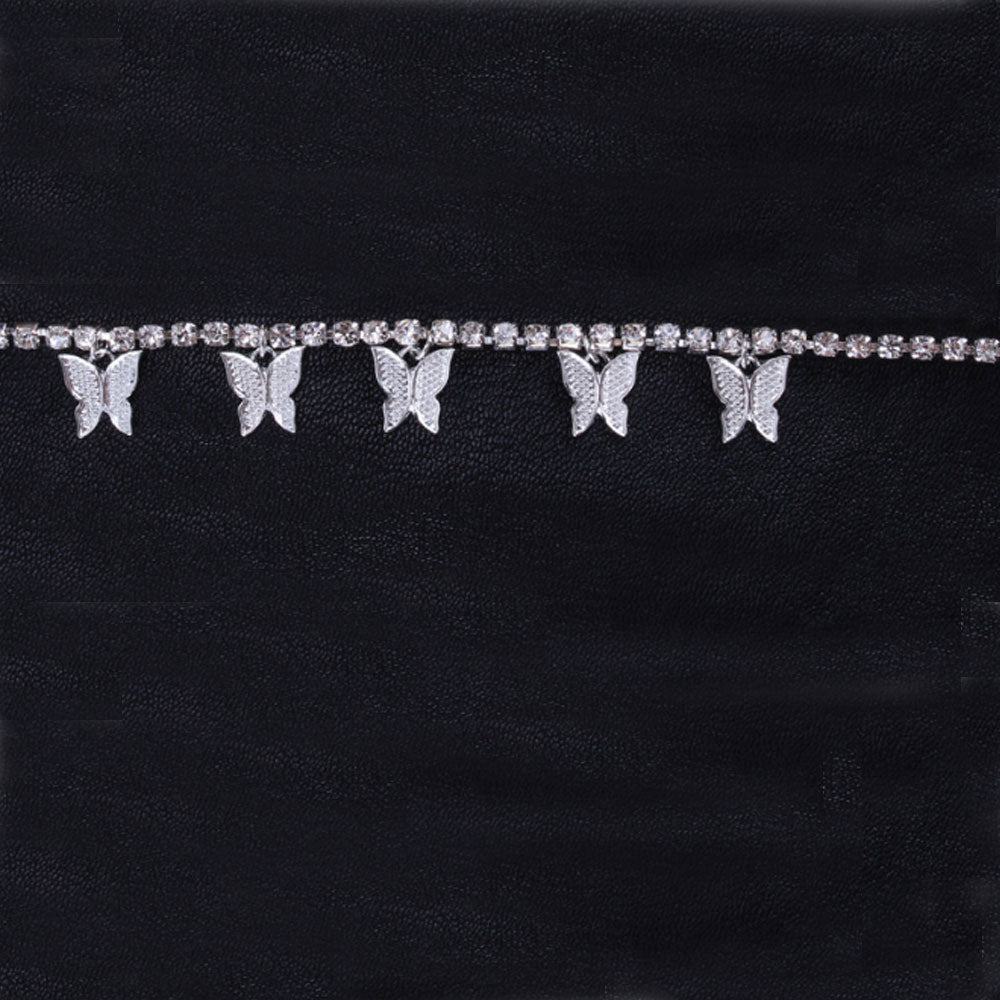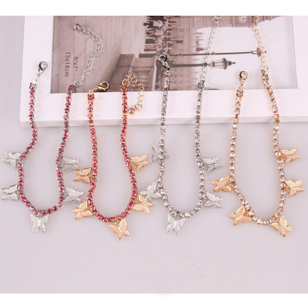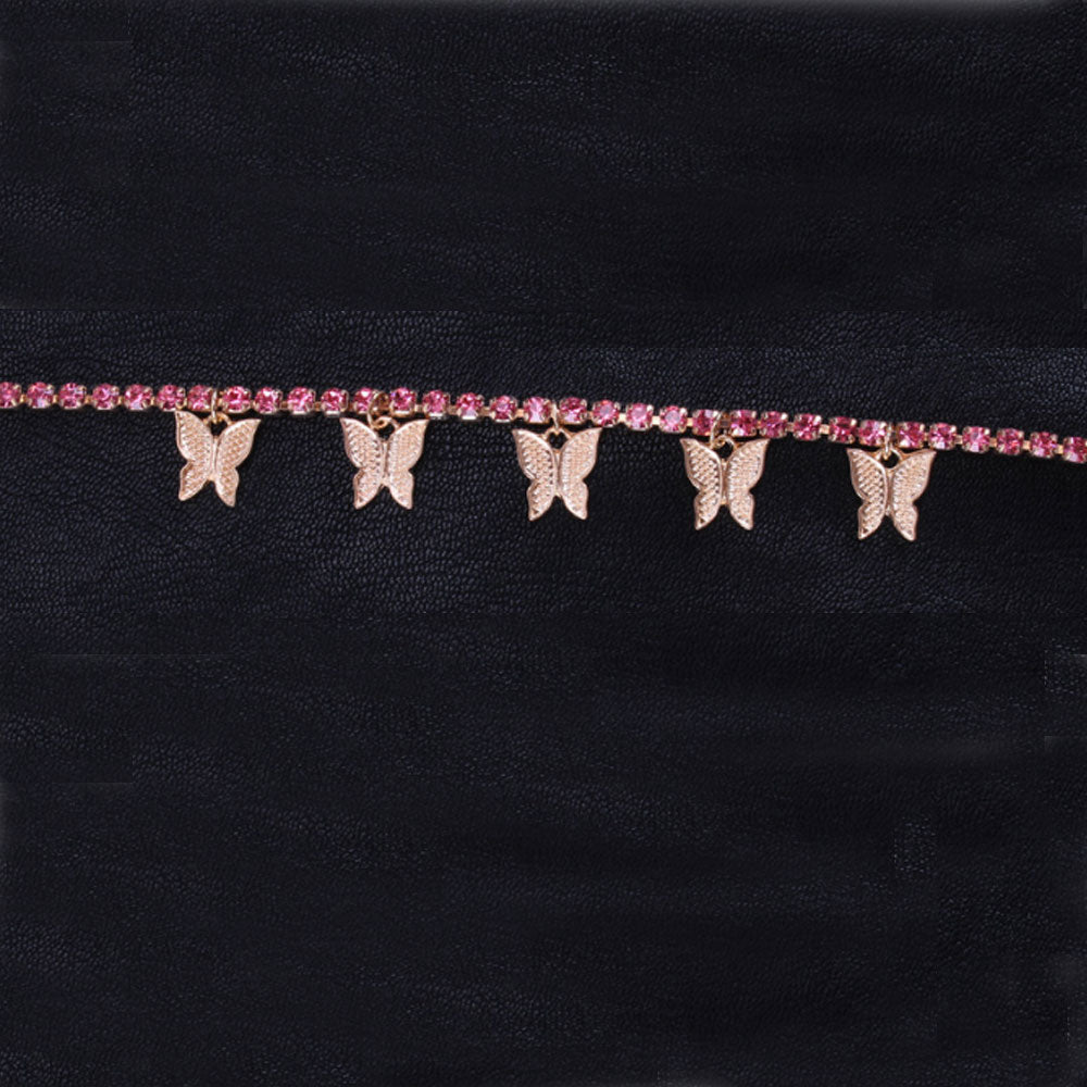 rhinestone beads diamond pink butterfly tennis anklet gold silver