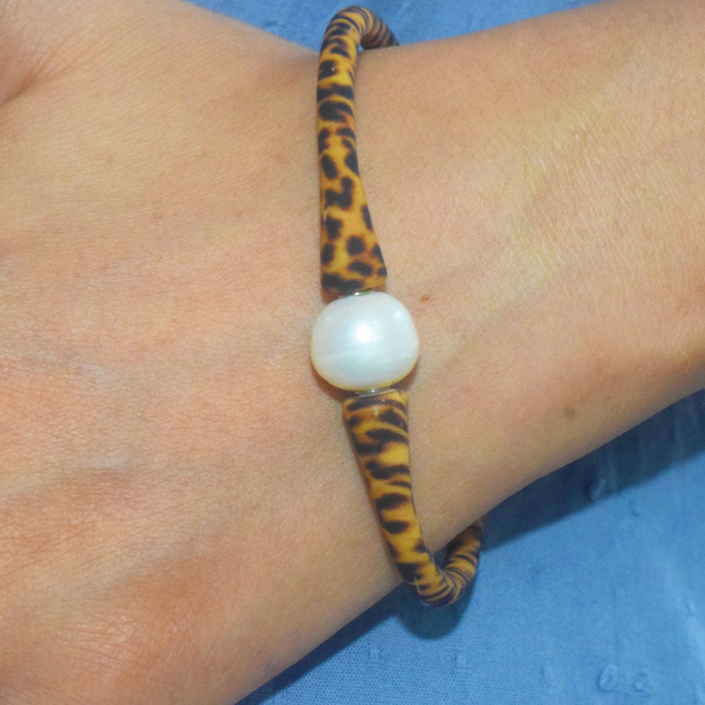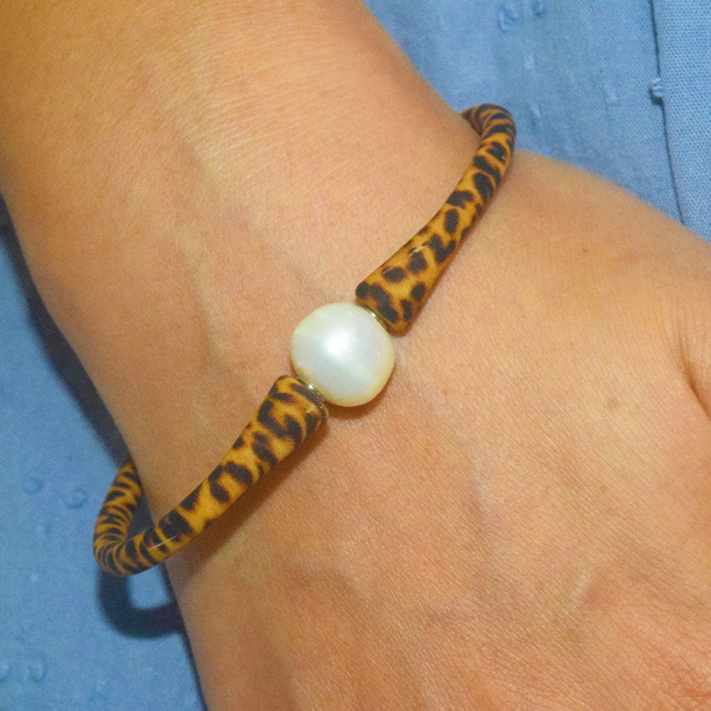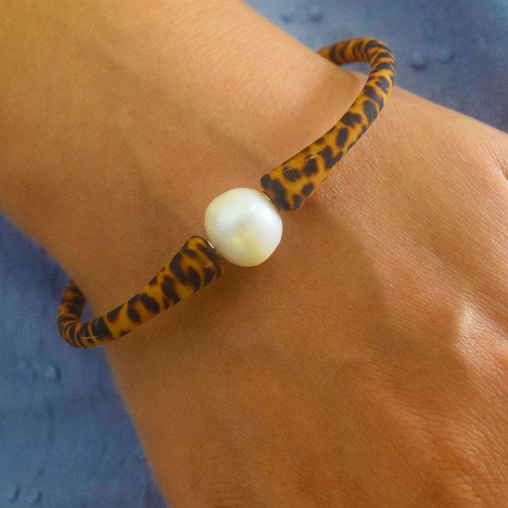 silicone rubber wristband with genuine freshwater pearl bead