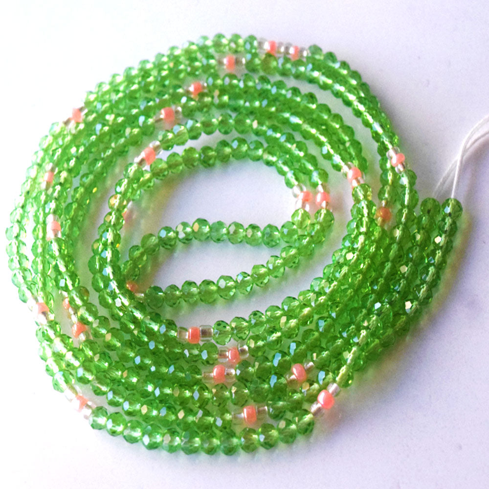 sexy females african waist beads belly ring body chains with crystal green color jewelry on cotton cord women bulk wholesale