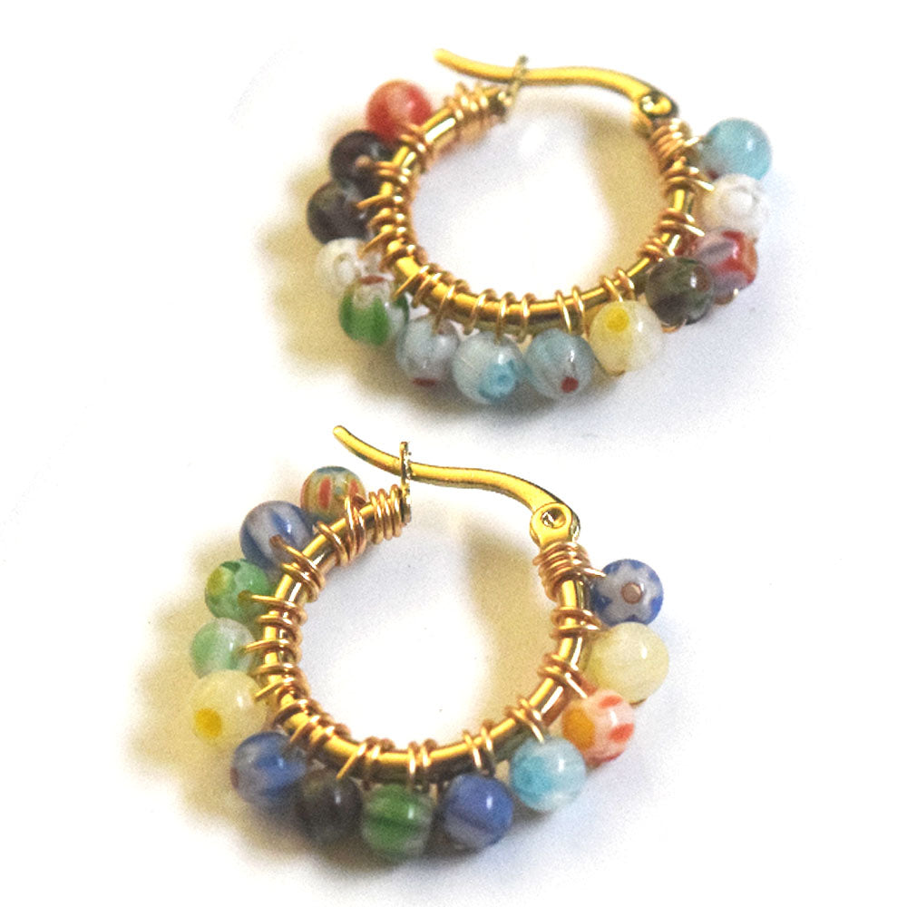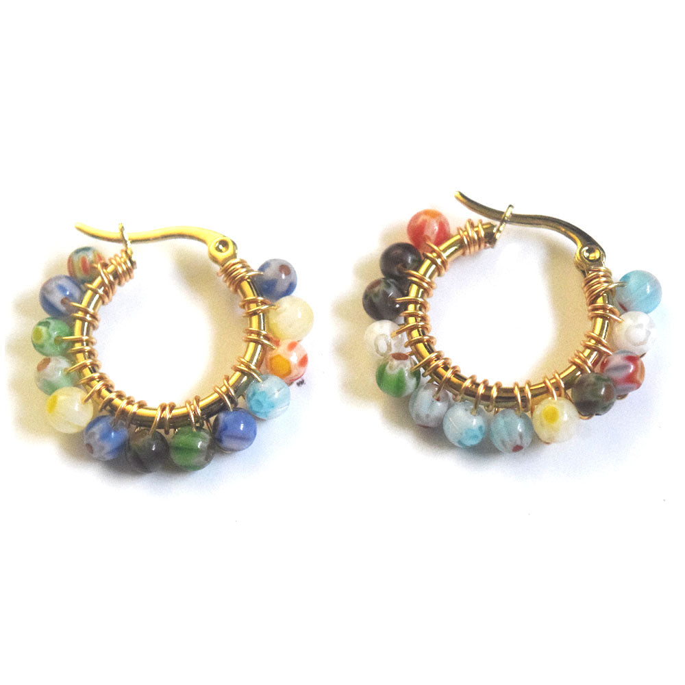 small colored unique handmade fashion stainless steel frame coloured glaze beads beaded hooped stylish earring women