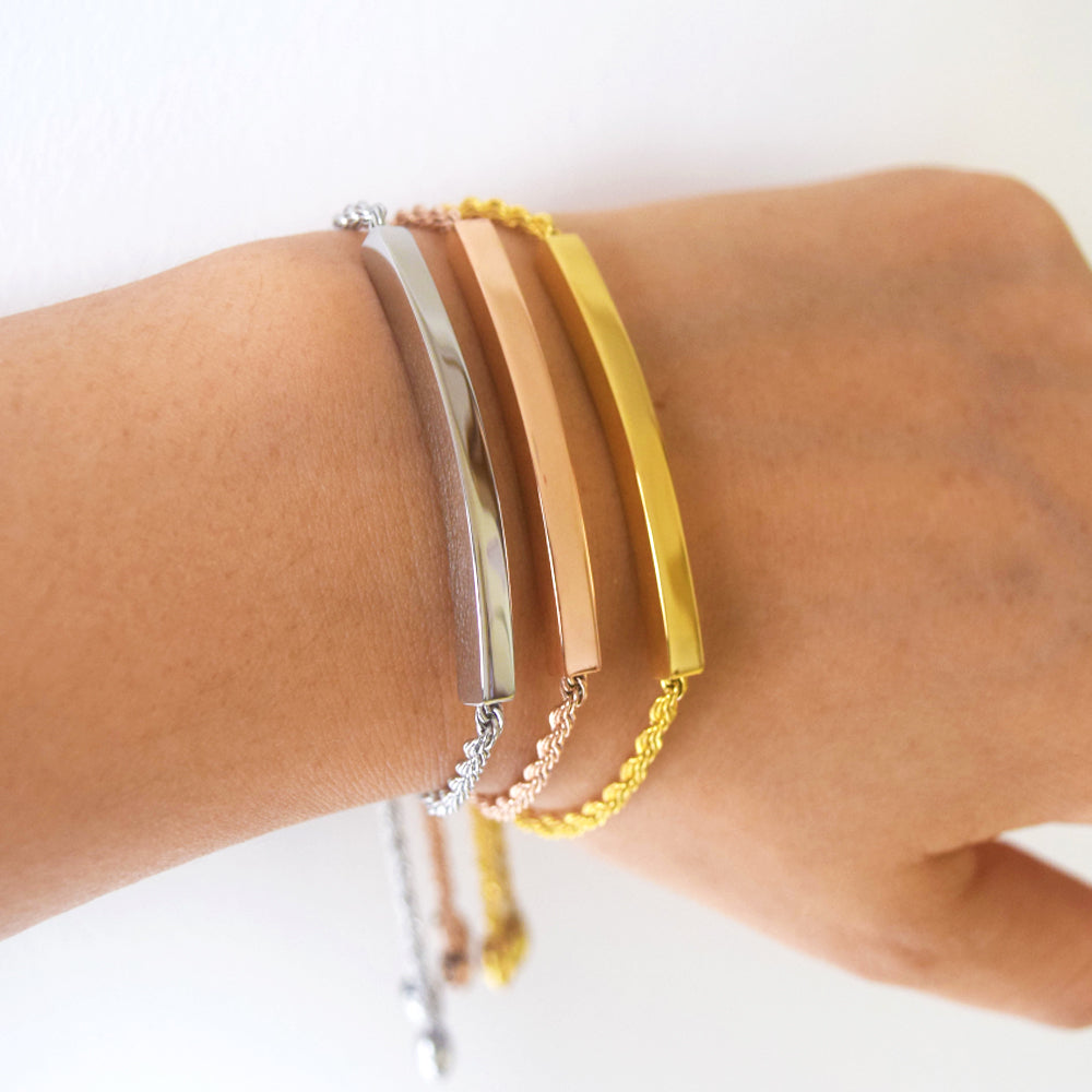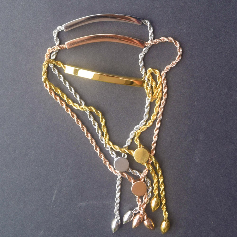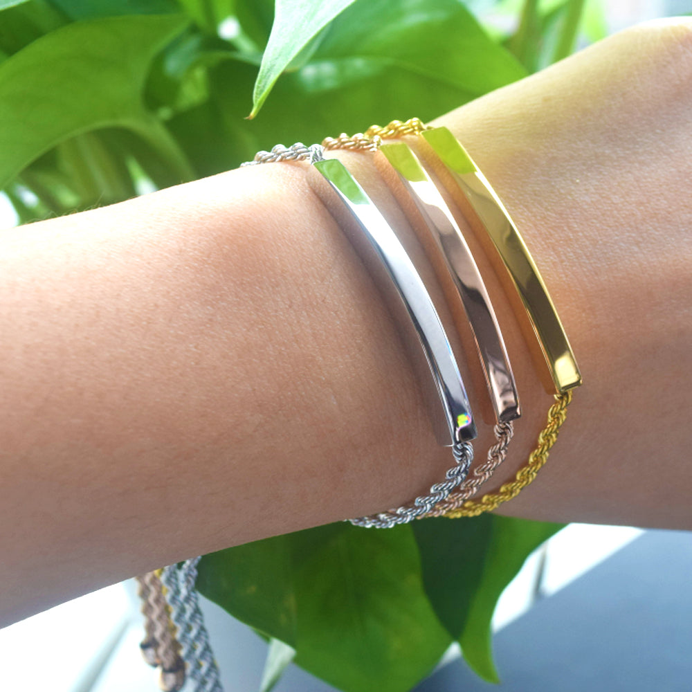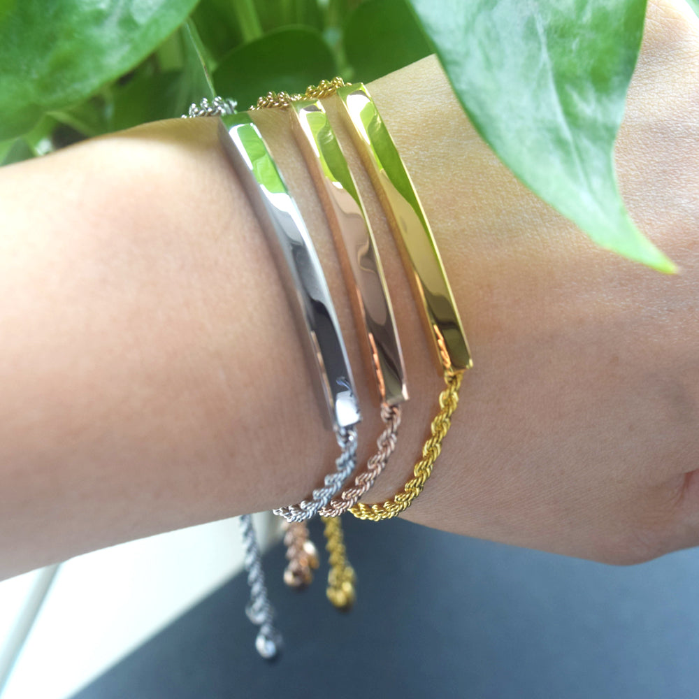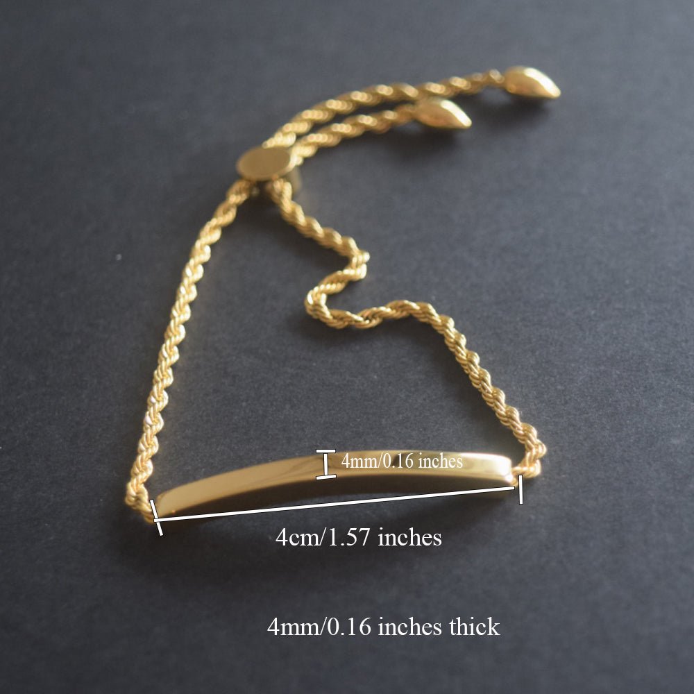 stainless steel 18k gold plated blank custom engrave bar bangle bracelet jewelry for women girls sliding slider adjustable clasp