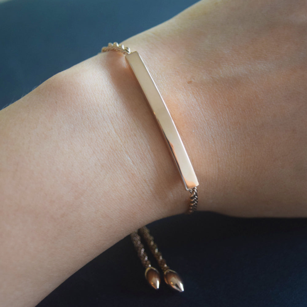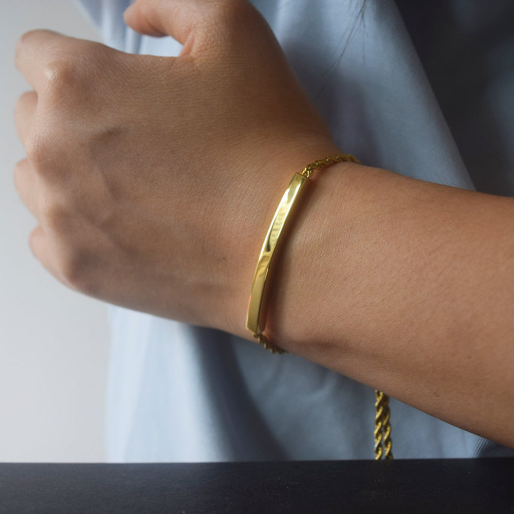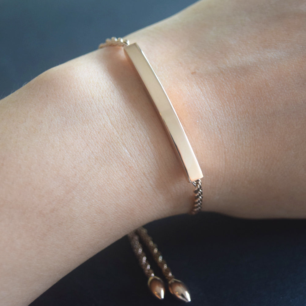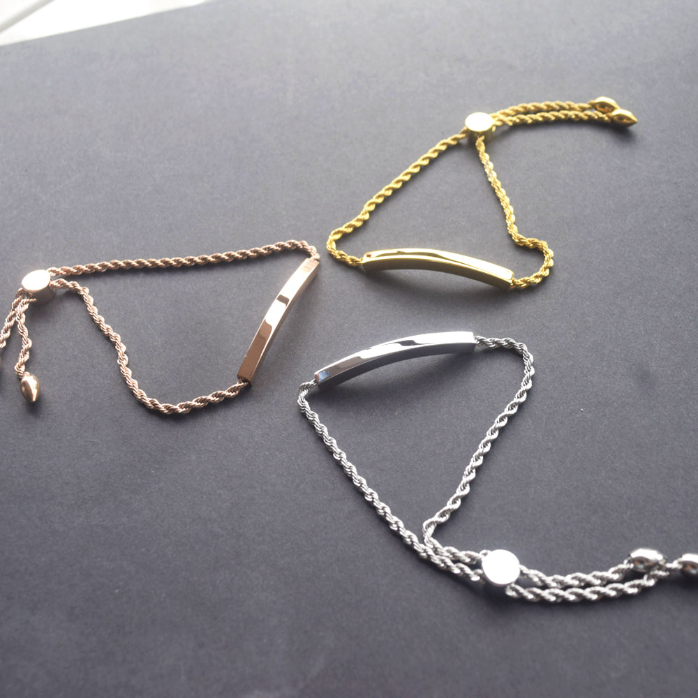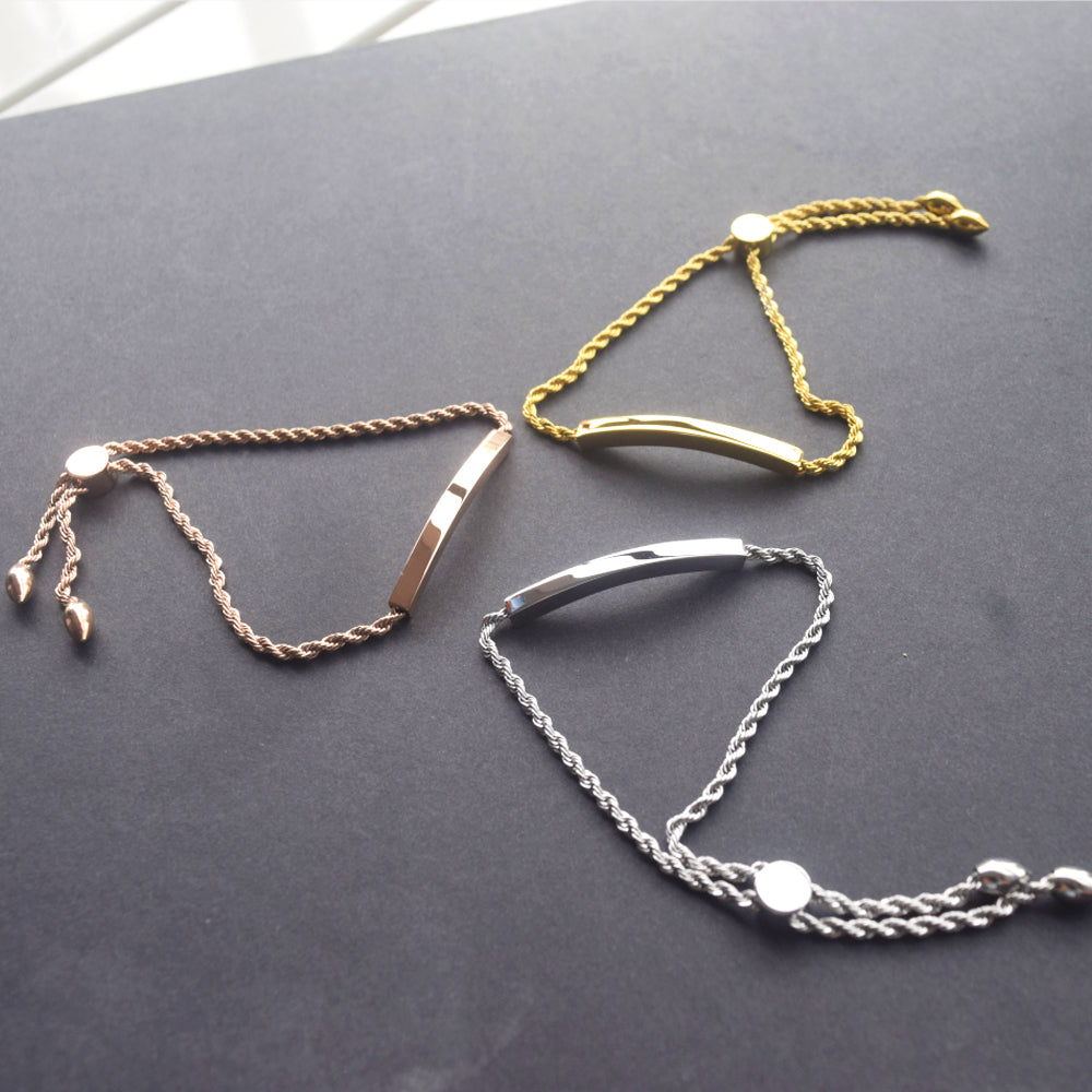 stainless steel 18k gold plated blank custom engrave bar bangle bracelet jewelry for women girls sliding slider adjustable clasp