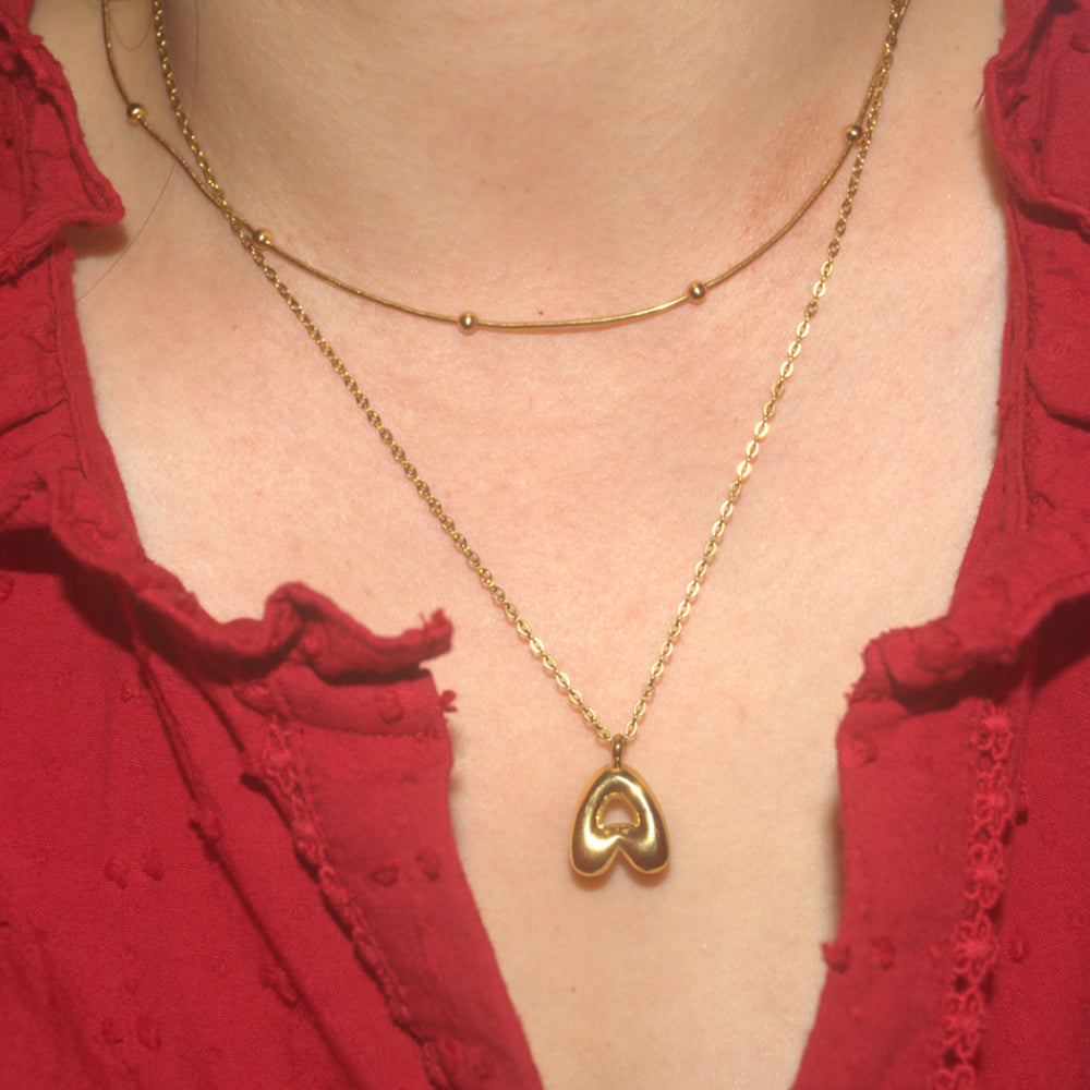 stainless steel 18k gold plated single initial bubble letter a j pendant necklace gold designs double layers jewelry women