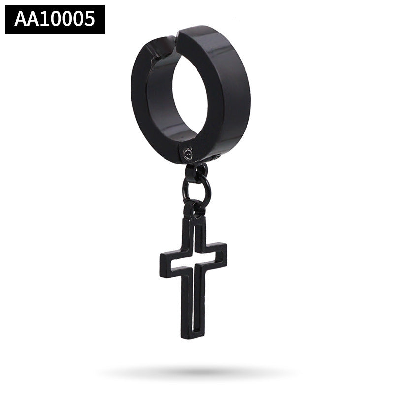 Stainless Steel Clip on Ear Cuff Hoops with Charm Dangles Star Cross Heart Earrings Unisex Men and Women Non-pierced Support