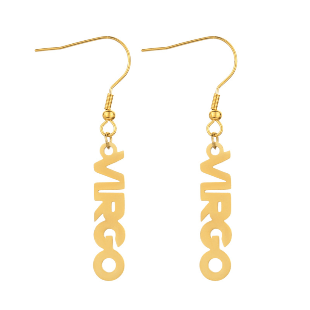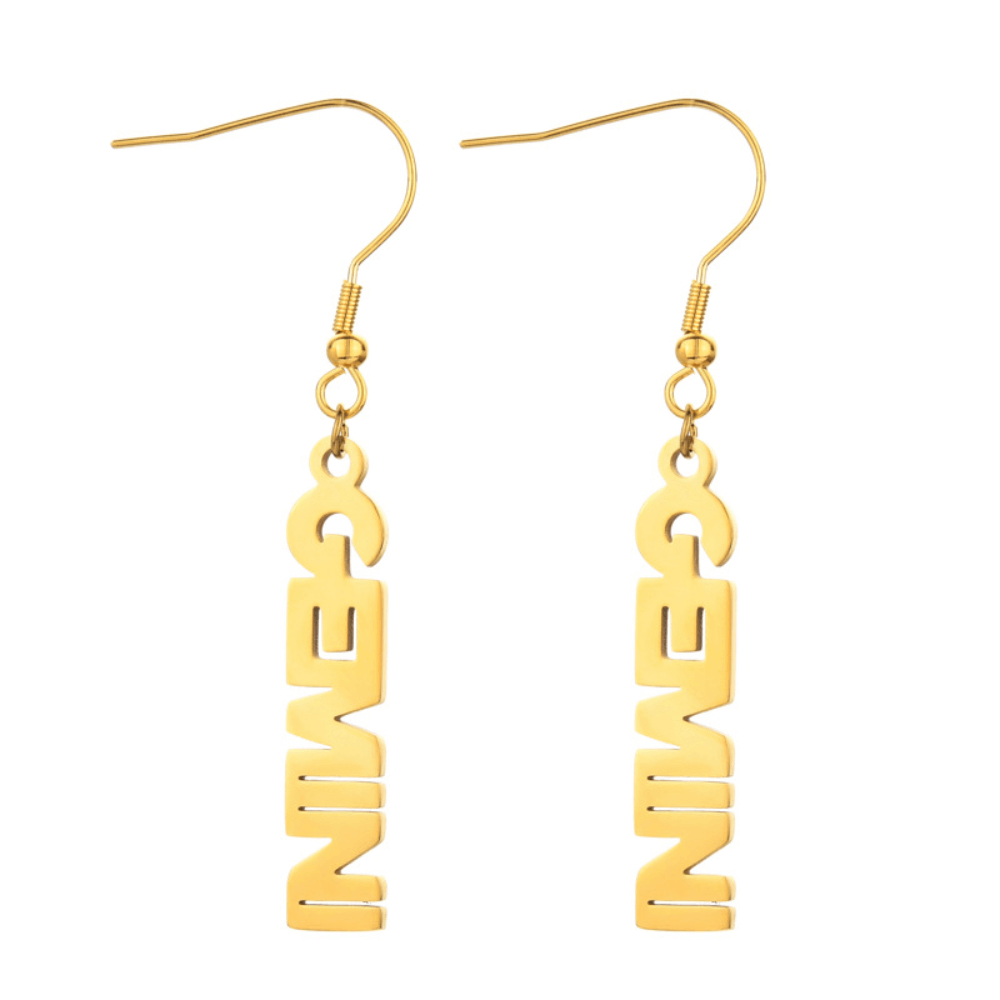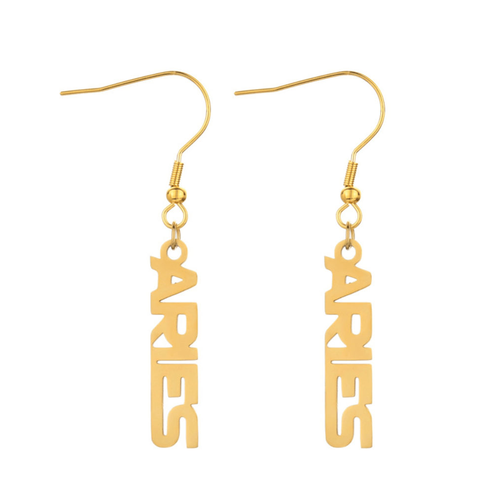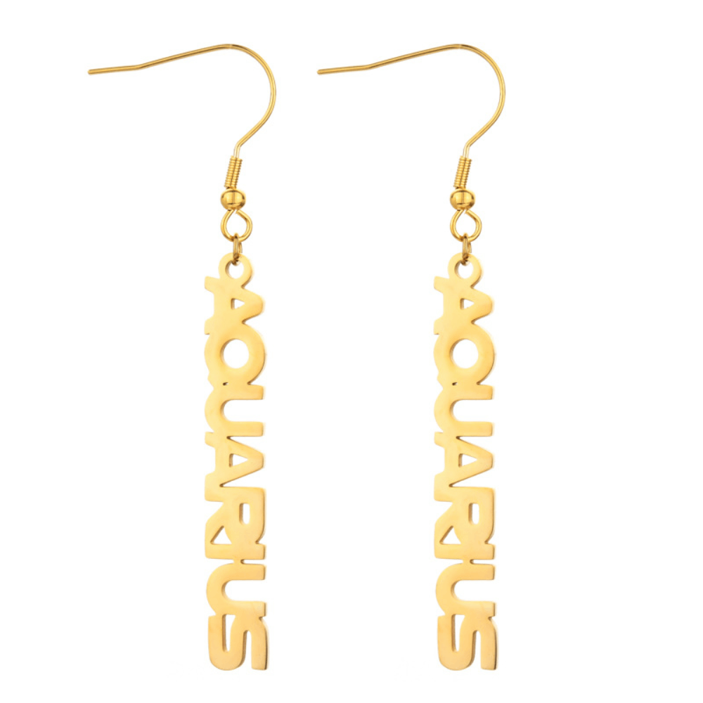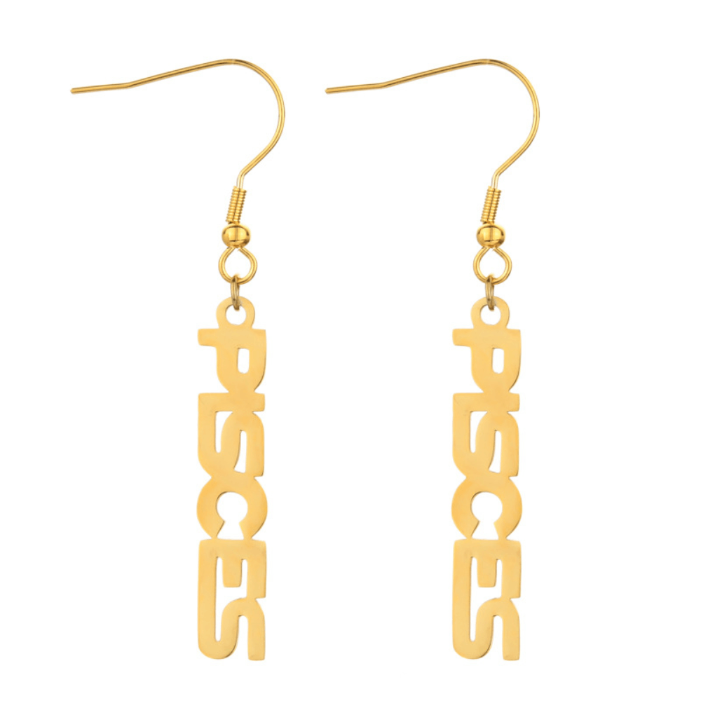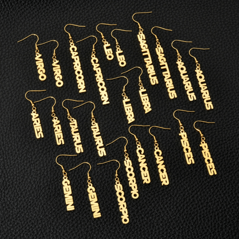 stainless steel english font gold silver plated horoscope twelve zodiac sign pendant earring jewelry for women earrings