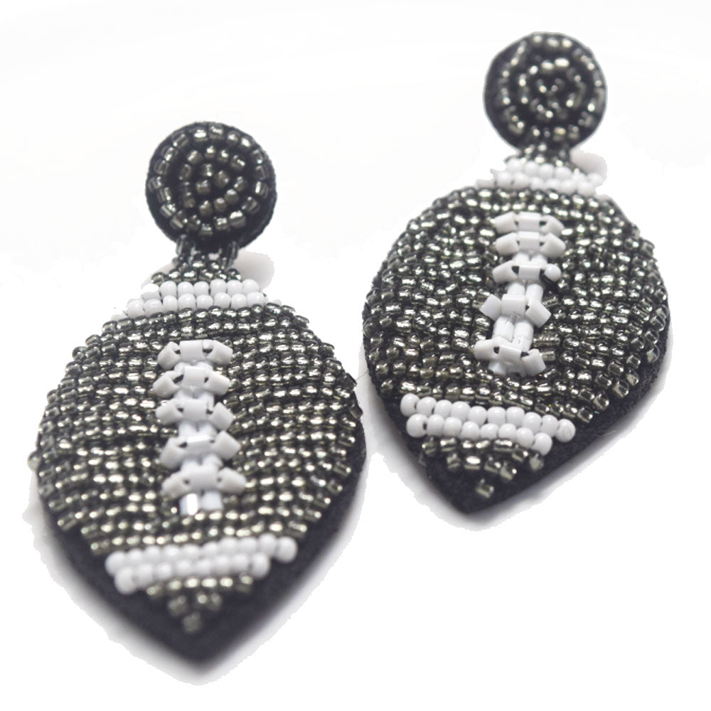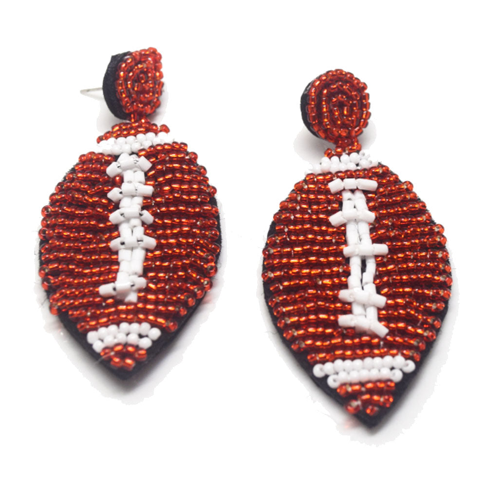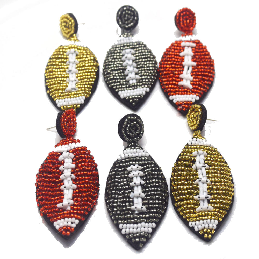 statement boho bohemian glass rice seed beads beaded rugby Rugger ball football pendant earring women jewelry accessories