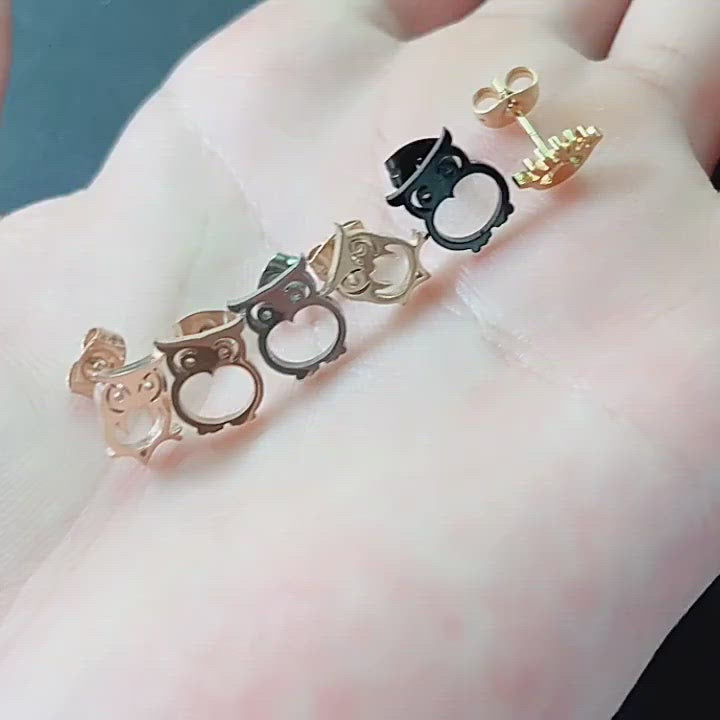 tiny coconut owl charm stainless steel stud earrings jewelry earring women earrings