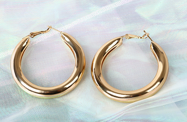 trendy brass alloy earrings gold hoop Simple big circle fashion earrings Hollow dangle earring women