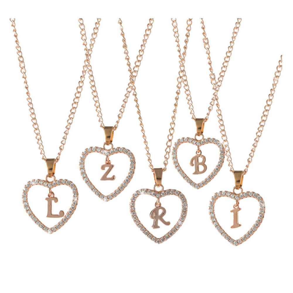 Trendy fashion Alloy classic gold rose love heart 26 alphabet necklace zircon jewelry diamond initial alphabet necklace