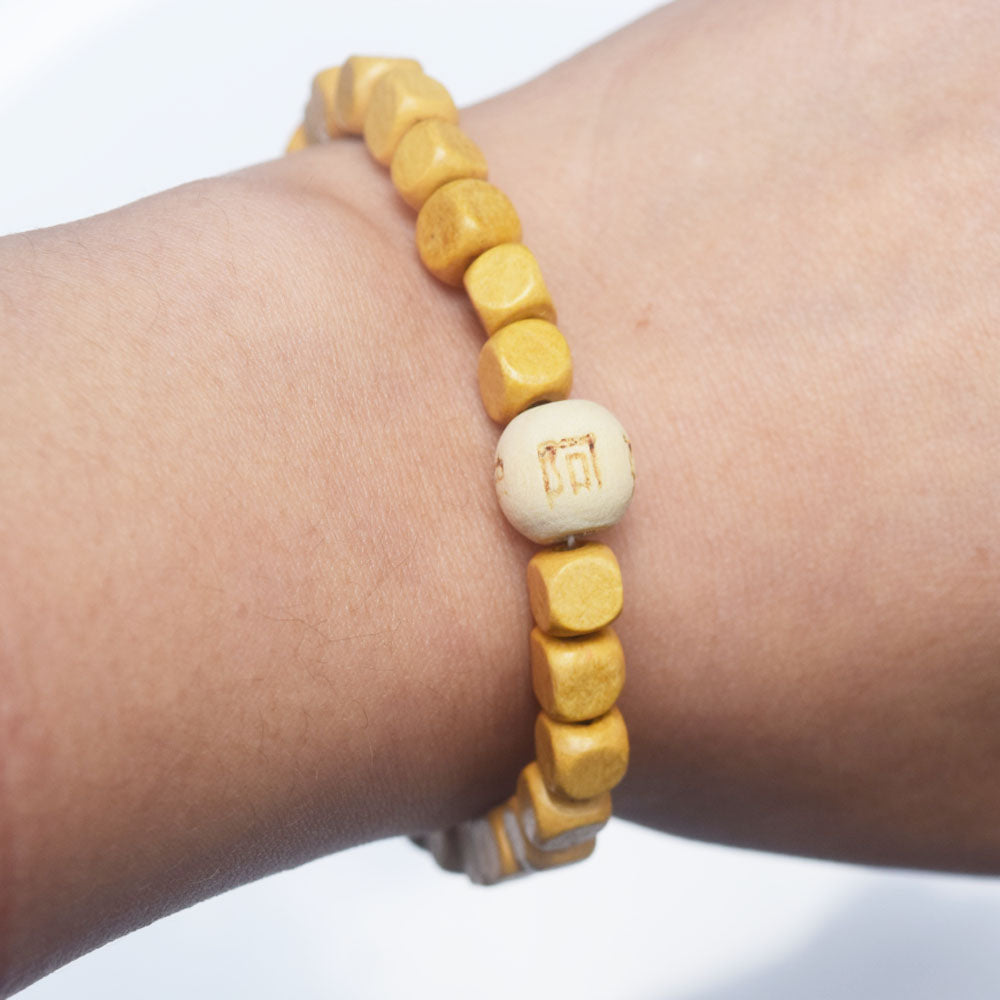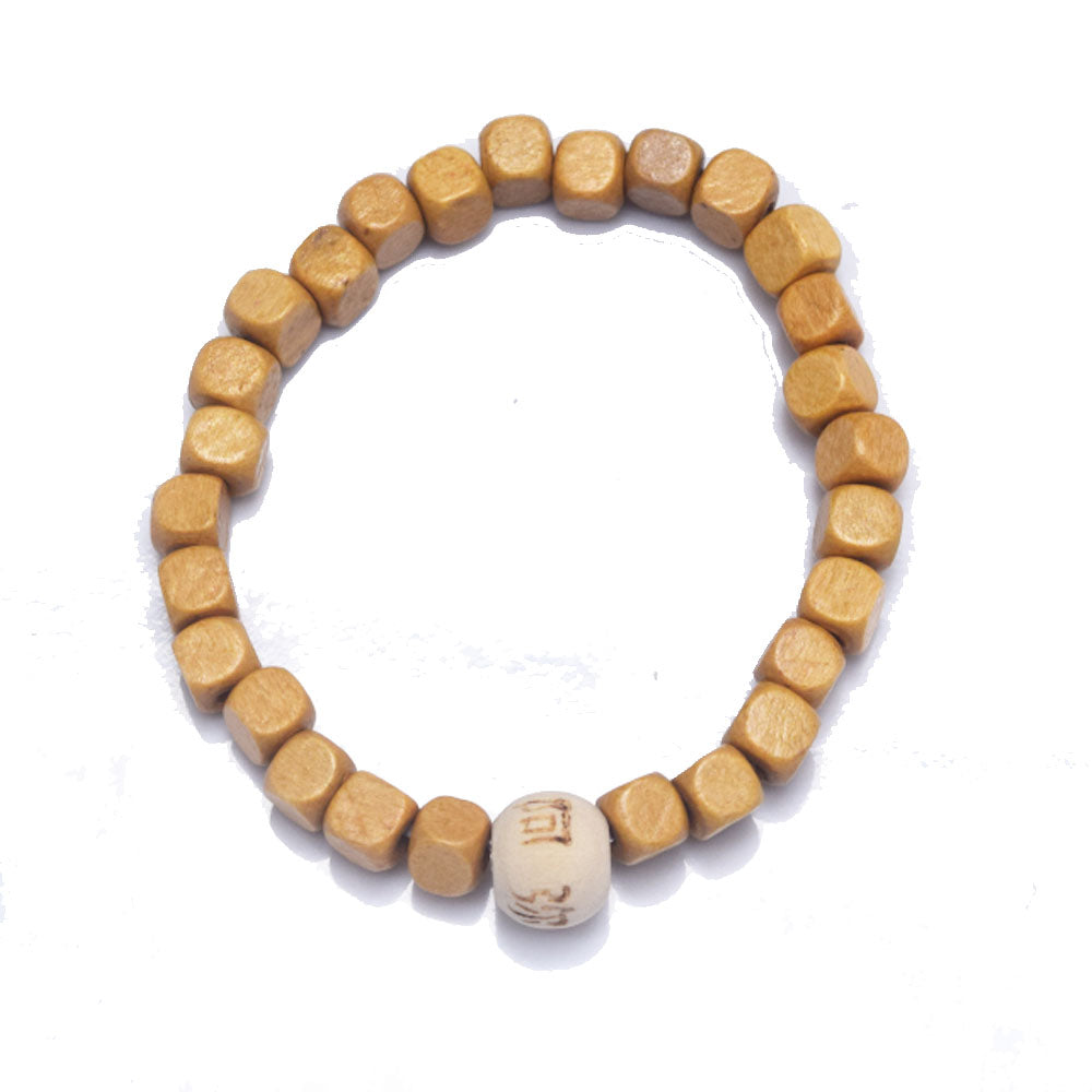 trendy handmade elastic cord stretchy square wood beads beaded chinese buddhist Amitabha charm bead bracelet jewelry women
