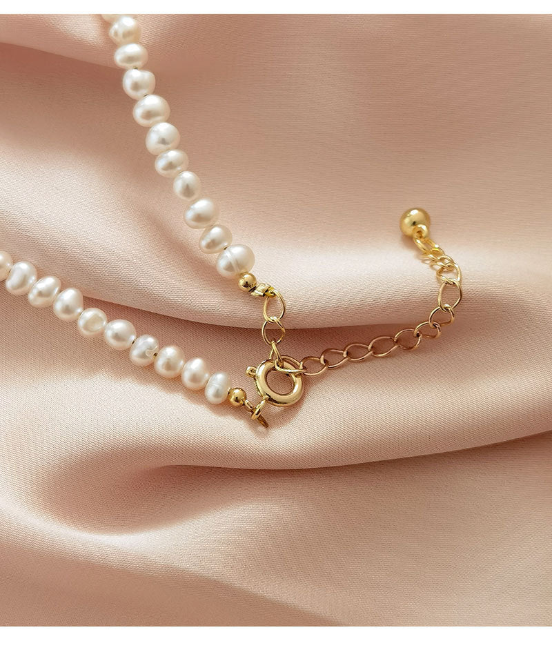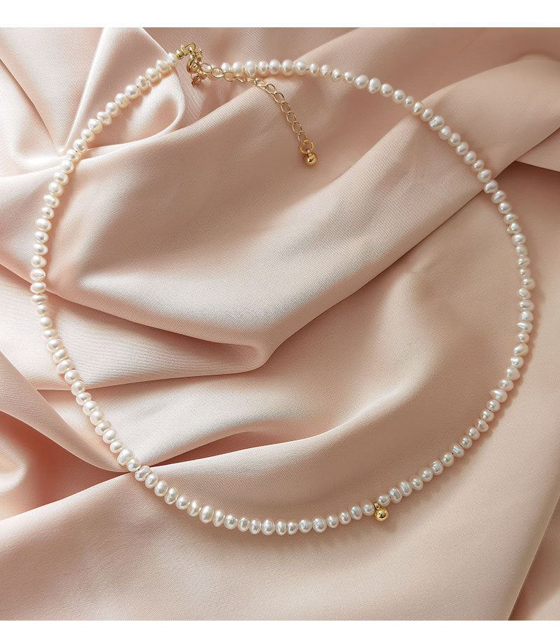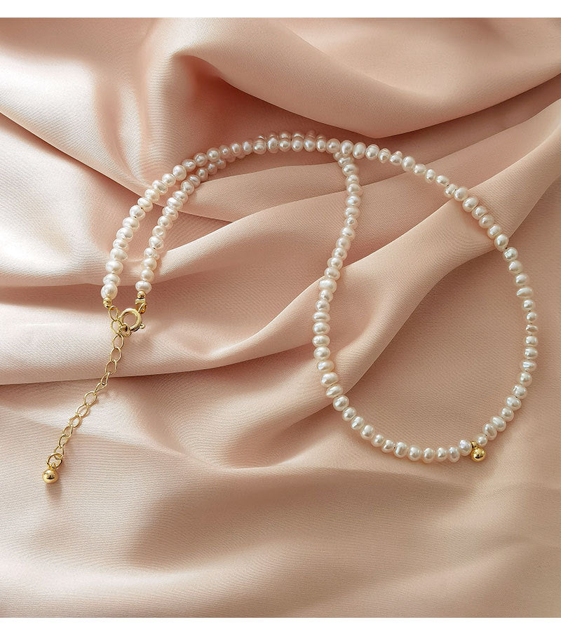 unique genuine dainty small rice pearl beads beaded chain necklace 14k gold plated brass charm bead jewelry for women kids