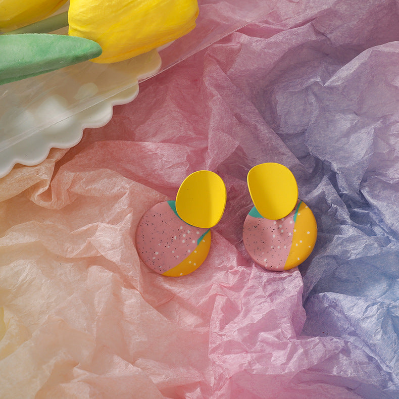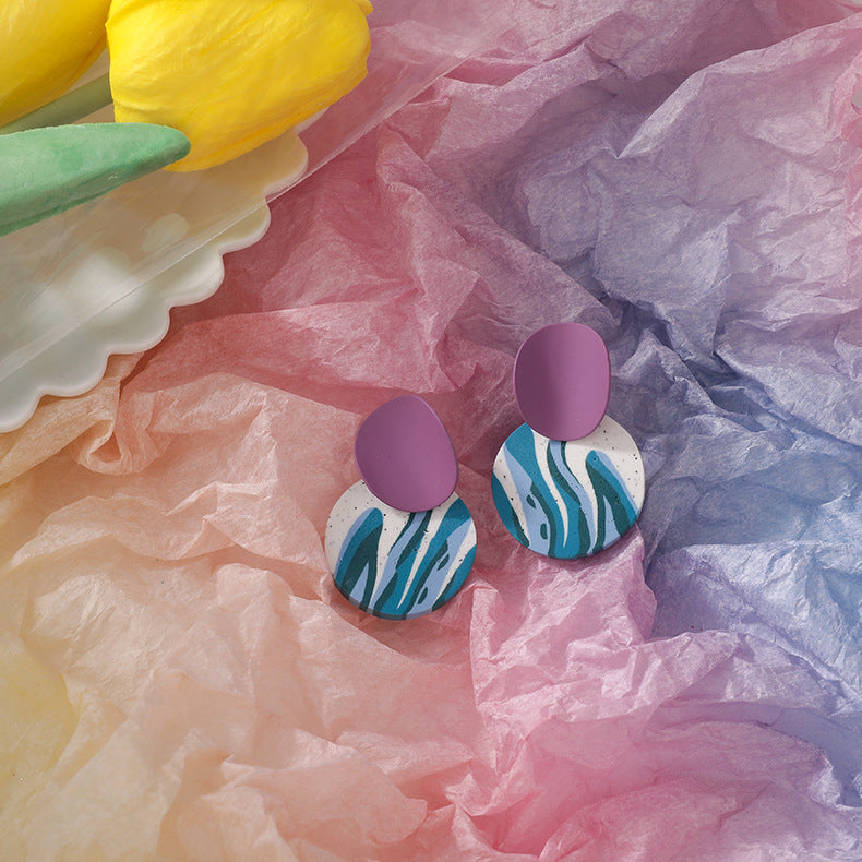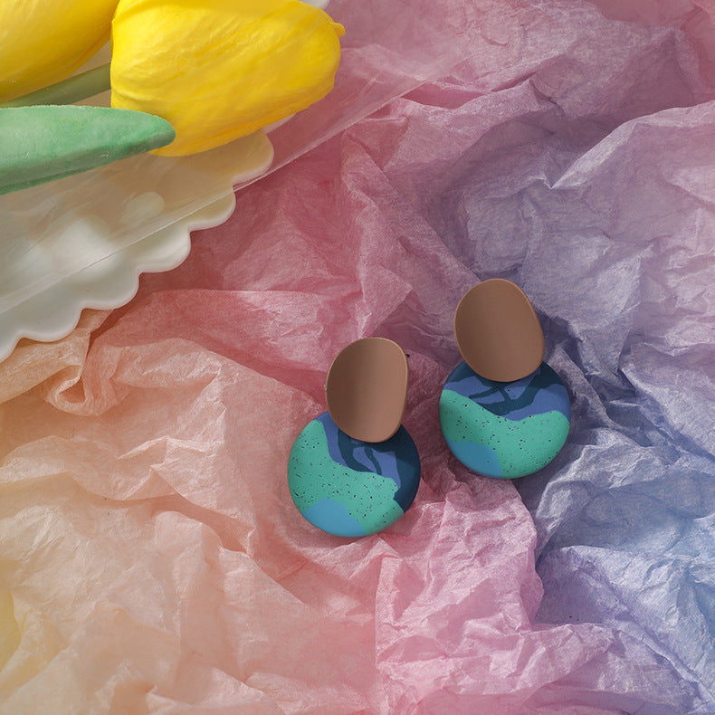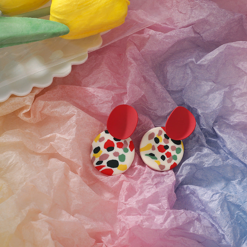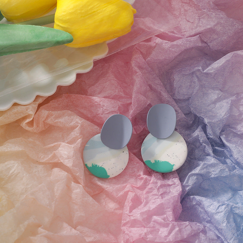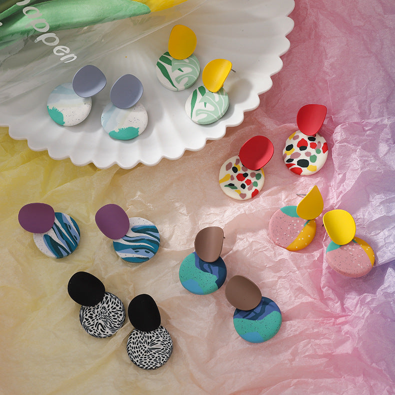 unique new handmade summer geometric hoop dangle soft polymer clay cute earrings women earring jewelry