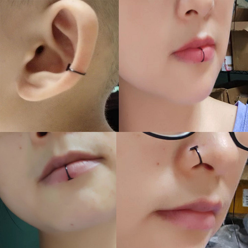 unisex stainless steel nose ring cuff clip on ring mouth lip ear opener rings jewelry