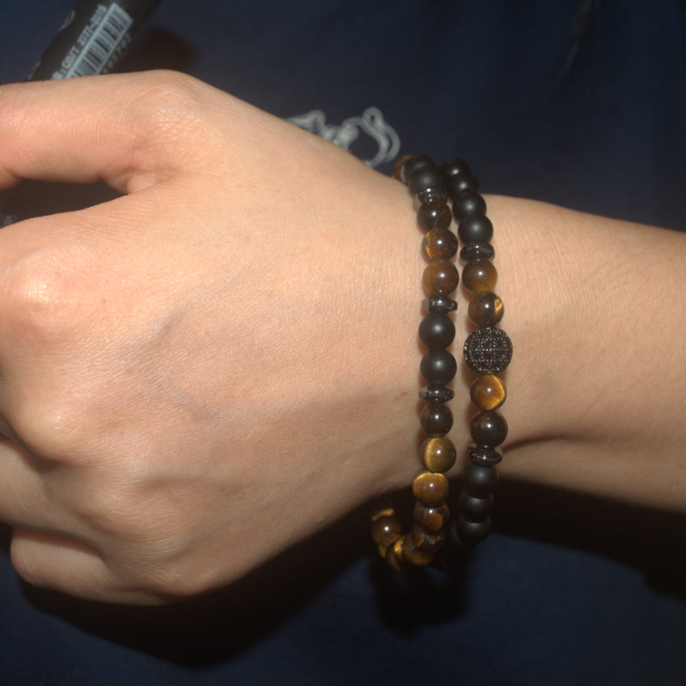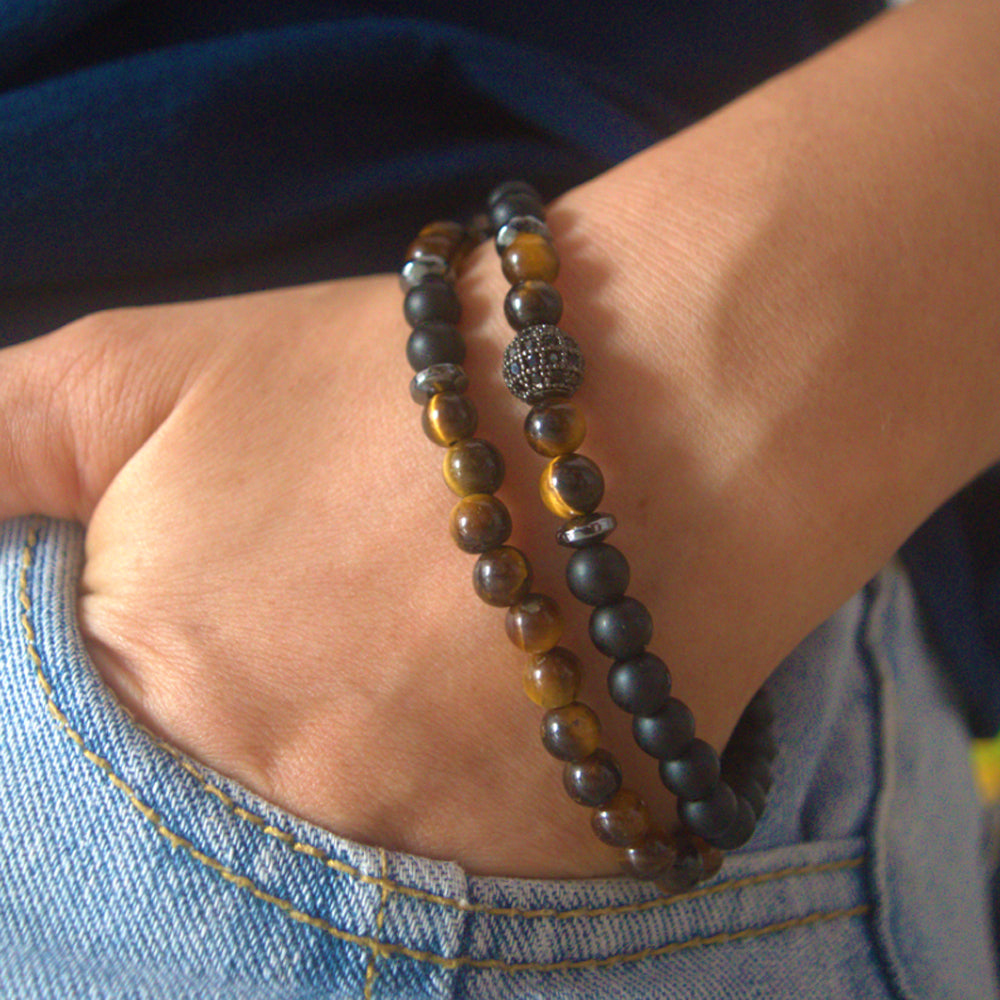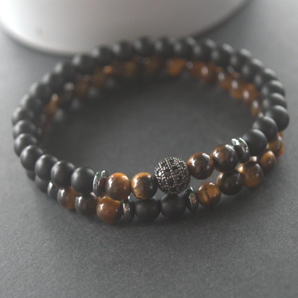uxury natural universe gem-stone genuine stone black zircon bead charm bracelet 2pcs pack 6mm elastic cord bracelets jewelry